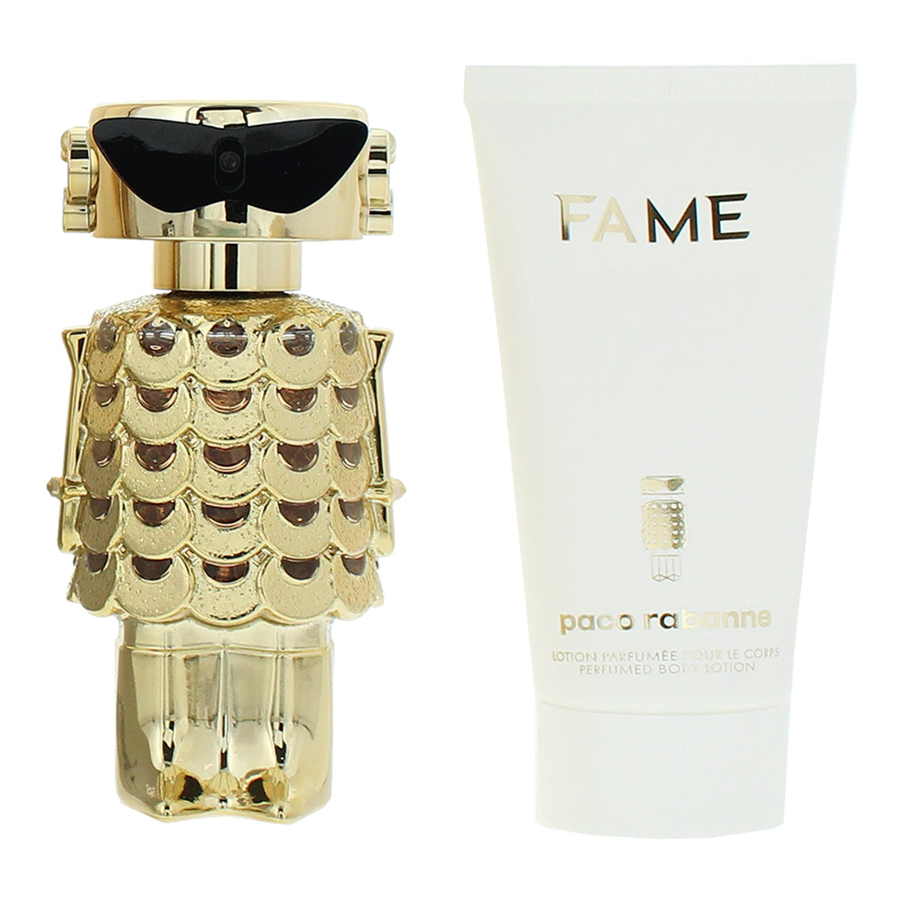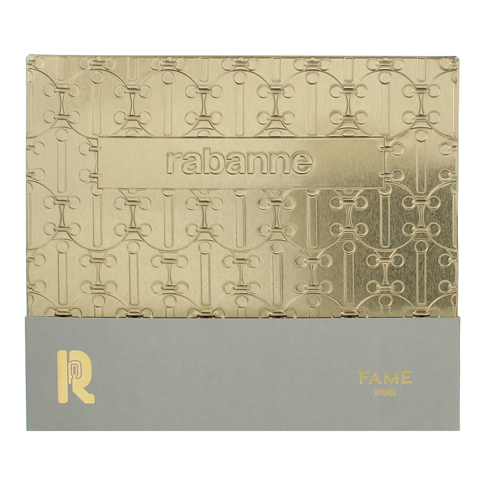 The Rabanne Fame Intense 2 Piece Gift Set features the vibrant Fame Intense Eau de Parfum (50ml) paired with a complementary Body Lotion (75ml), offering a luxurious layering experience of this modern scent.