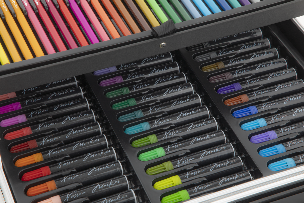 The ultimate collection for any serious artist, this 145-piece Art Set from Nassau Fine Art has everything you need to explore a huge range of creative techniques. This comprehensive set includes a massive variety of materials for drawing, sketching, and painting, all neatly organised inside a durable and stylish black metal carry case with a clever cantilever design.