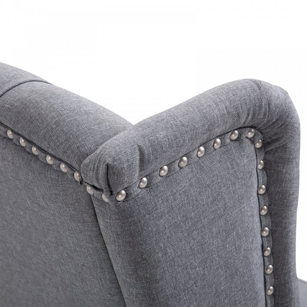 • Wrapped in light grey linen, allows your skin to breathe and is easy to clean, with four wood legs to keep chair stable and level