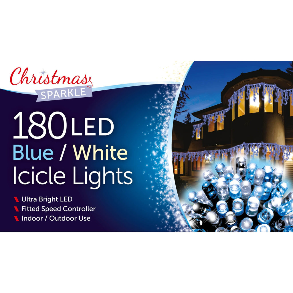 180 Blue & White LED Snowing Icicle Lights