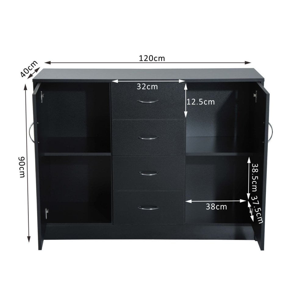 You like to be neat and tidy, so do we! It is for the reason that we design the HOMCOM drawer cabinet. It is a simple unit that can be enough storage for a limited space with 2 doors and 4 drawers. Two doors open to two separate compartments with two adjustable shelves allowing you to reconfigure the layout to suit your needs. The drawer and door have handy smooth handles so that you can open them convenient. Easy and quick assemble is required thanks to the pre-drilled holes.