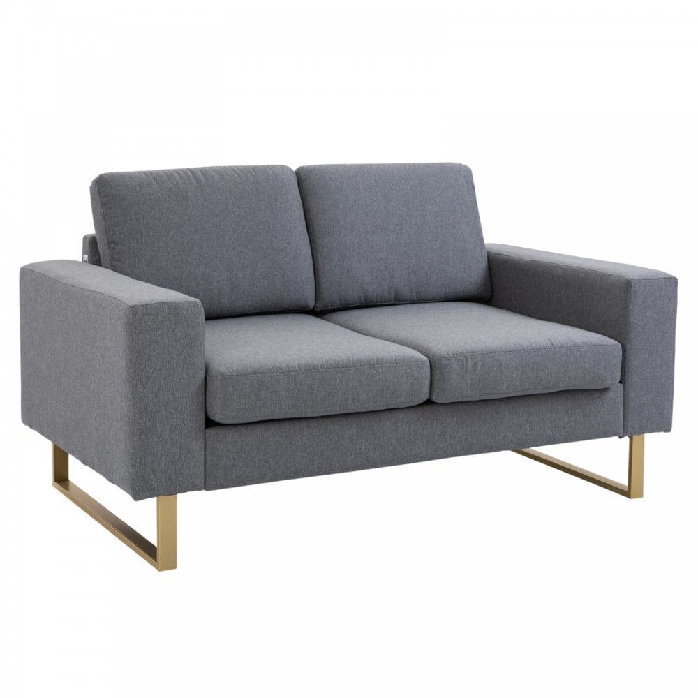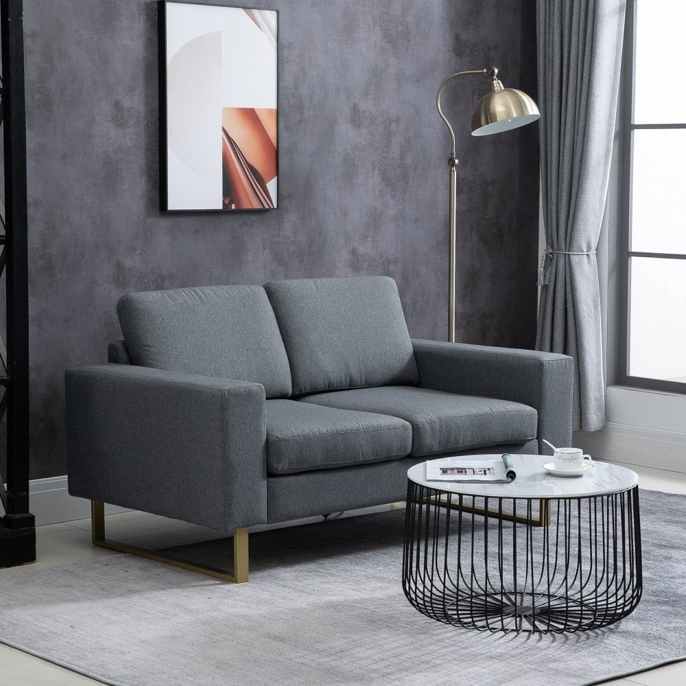 2 Seater Sofa Modern Double Seat Compact Loveseat Padded Linen Upholstery Steel Legs - Grey