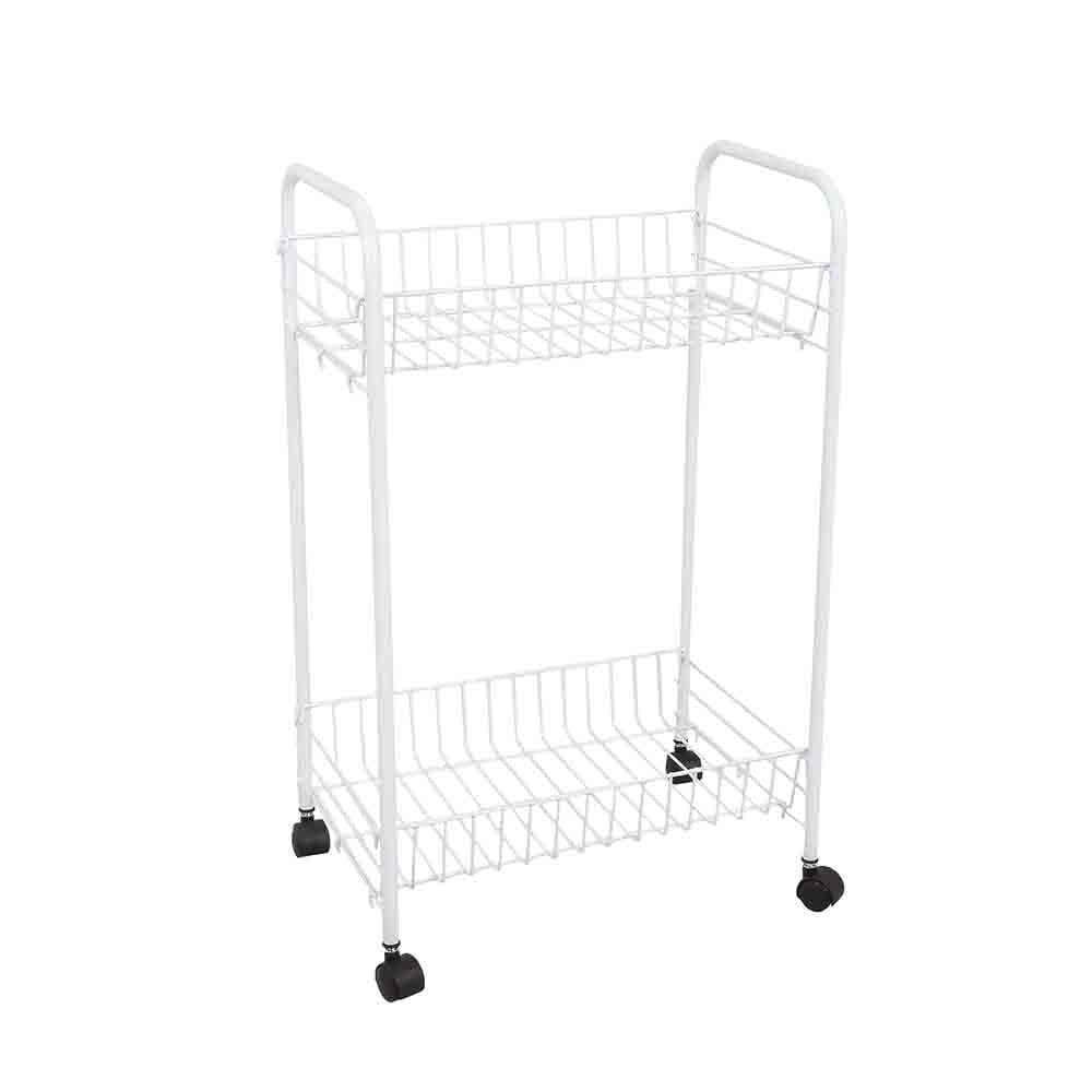 This stylish 2 tier trolley is equipped with 2 strong and sturdy storage baskets, which can take a good weight. This trolley is the perfect storage solution for all your kitchen accessories and vegetables. It has 4 wheels for to allow you to move the unit around the kitchen with ease and is very practical for everyday use.