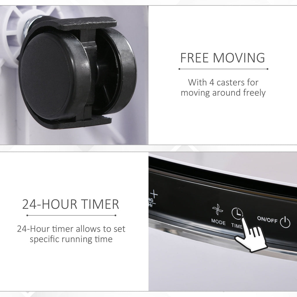 - FREE MOVING & EASY DRAINAGE: Four wheels on the base for free moving, designed with LED digital screen to show timer and humidity. Remove the water plug and insert the water pipe to make drainage convenient. Overall Dimension: 37W x 30D x 61Hcm