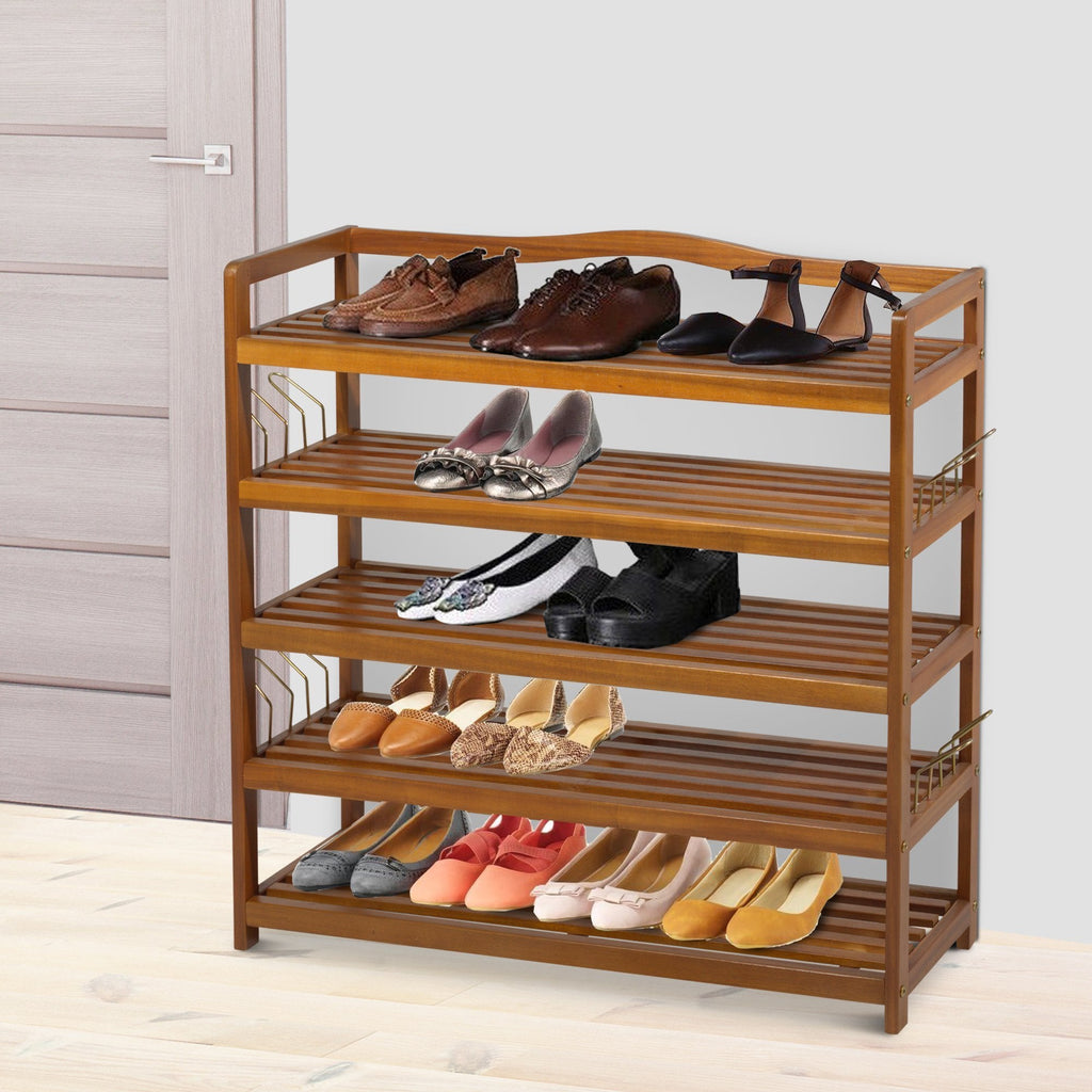 25 Pairs Shoe Rack W/ Slipper Hanger-Teak Colour