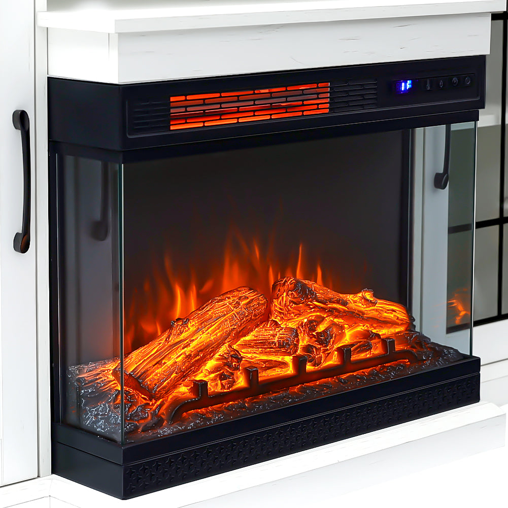 3-Sided Electric Fireplace TV Stand with Glass Door Closed Storage