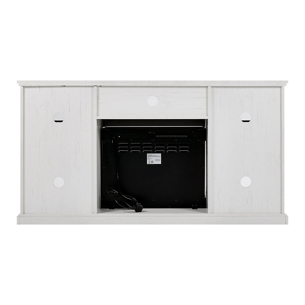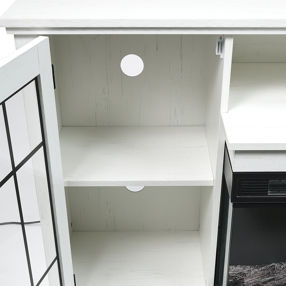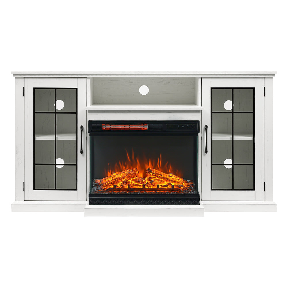 Enhance your homeâ??s comfort and ambience with the The Hot Sale TV Console with Electric Fireplace. The fireplace offers seven temperature settings from 65°F to 95°F and a timer range of 1 to 8 hours, allowing you to enjoy warmth exactly when you want it. Realistic flames with adjustable brightness create a cosy, inviting atmosphere, while the farmhouse-style TV console provides storage with two doors and one open shelf for media, electronics, and games.