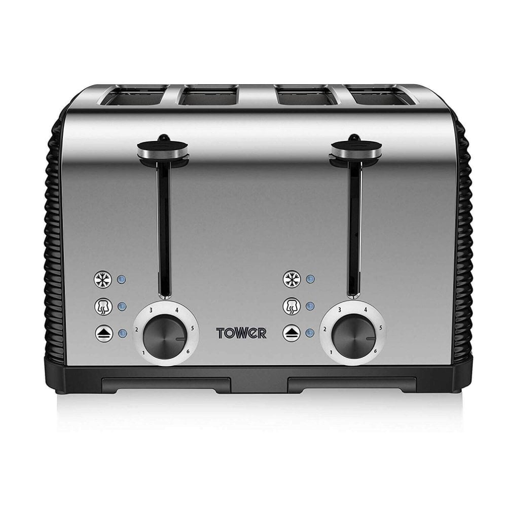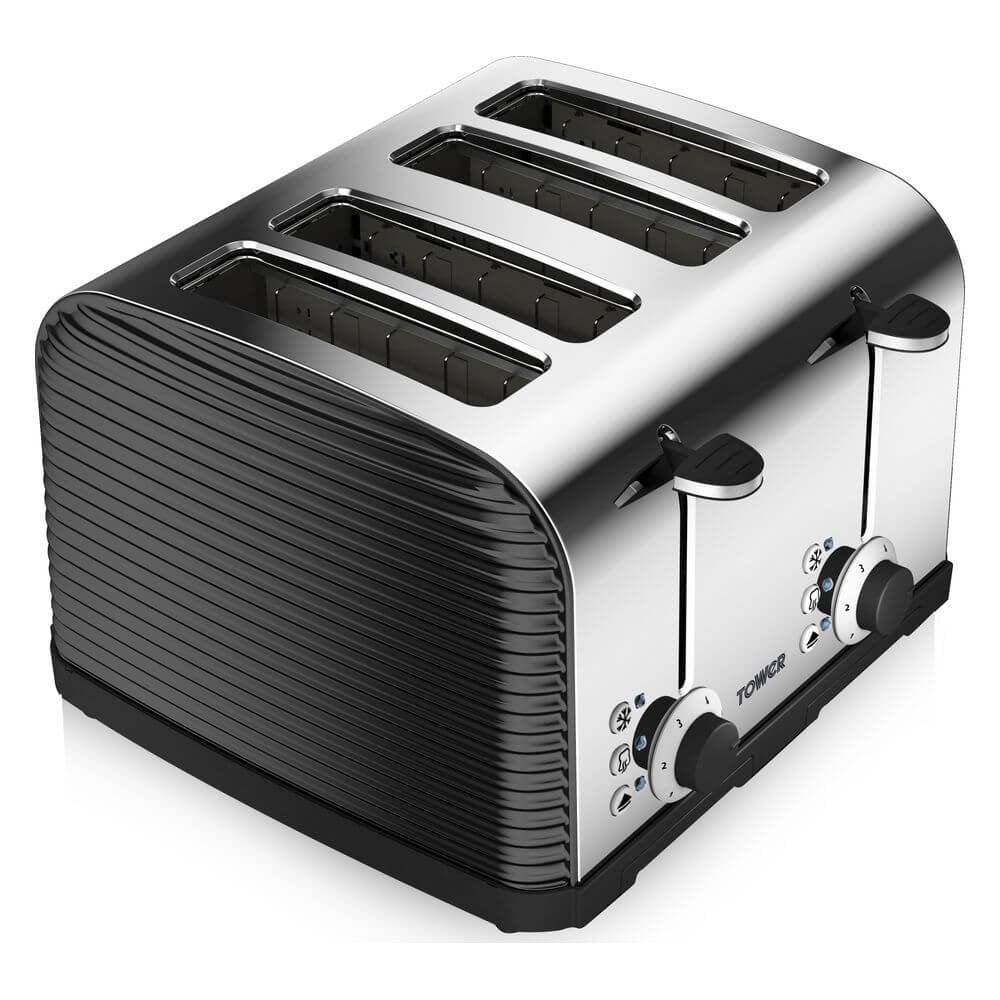 Create a futuristic style in your kitchen with the Tower Four Slice Linear Toaster. With its stainless steel accents and linear texture, this four slice toaster is an essential to any contemporary kitchen.