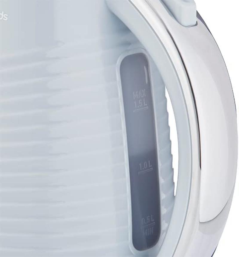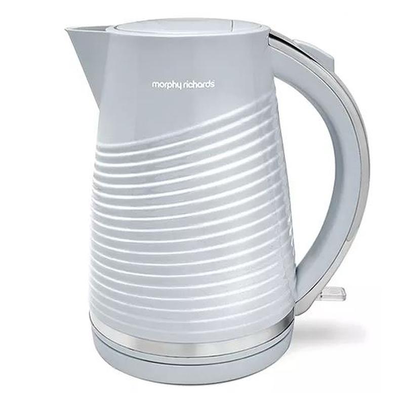 The Morphy Richards Dune jug kettle is ultra-stylish in on-trend patterned plastic with a premium gloss finish. Let Dune make a sweeping statement in your kitchen.Features include illumination and easy view water window. The large 1.5L capacity, combined with its rapid boil element, means you can quickly boil up to 6 cups. The removable limescale filter ensures a quality hot drink and the 360 base is ideal for both left and right handed users.
