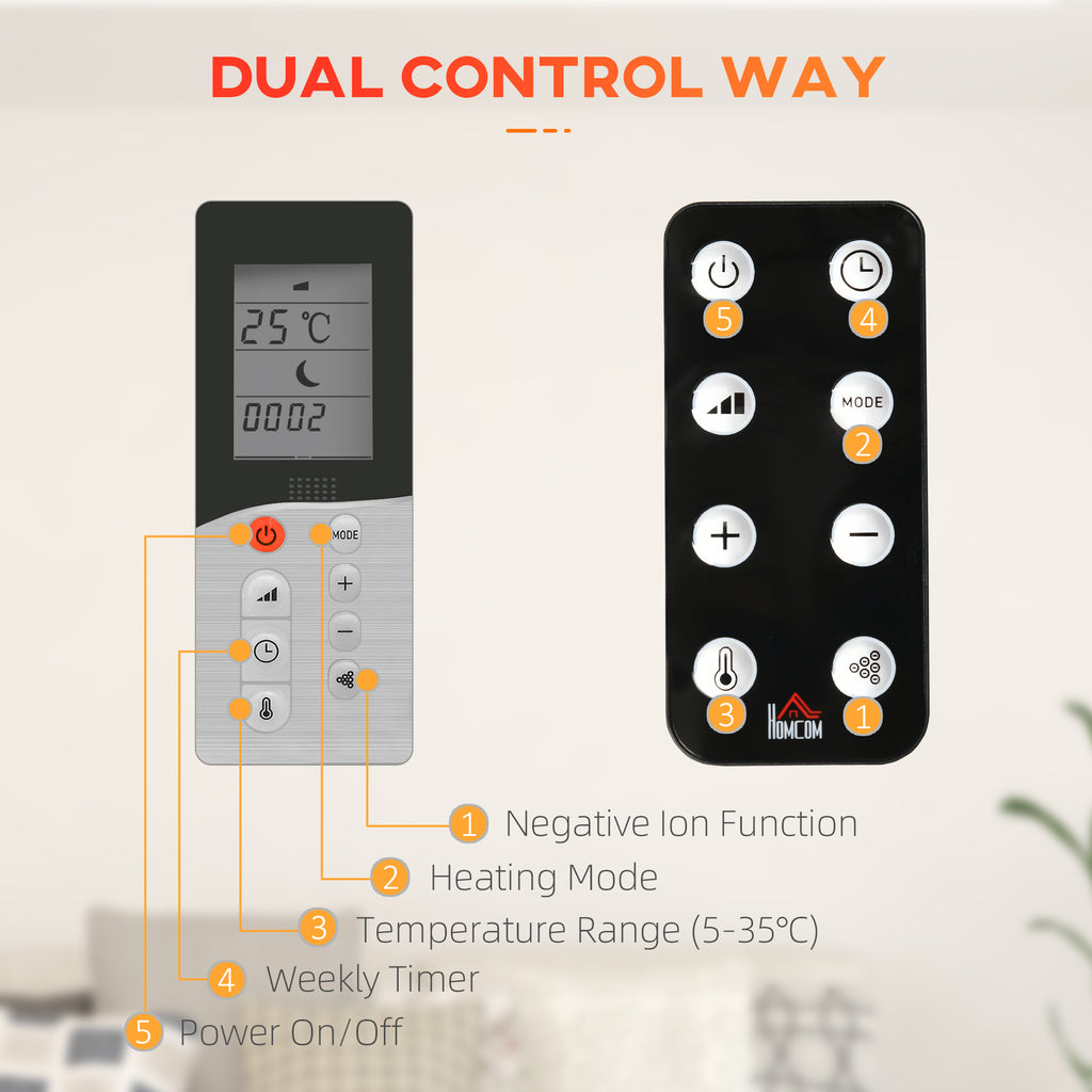 Keep warm with heaters for home from HOMCOM. It comes with a 1000W and 2000W heat setting, so you can change it depending on how cold you are - perfect for transitioning from Autumn into Winter. The energy efficient heater has wheels, so you can roll the unit easily from room to room - with the 1.6m cable allowing you to stretch across the room easily. Set between 5-35?, so your space is kept perfectly heated to your ideal temperature.