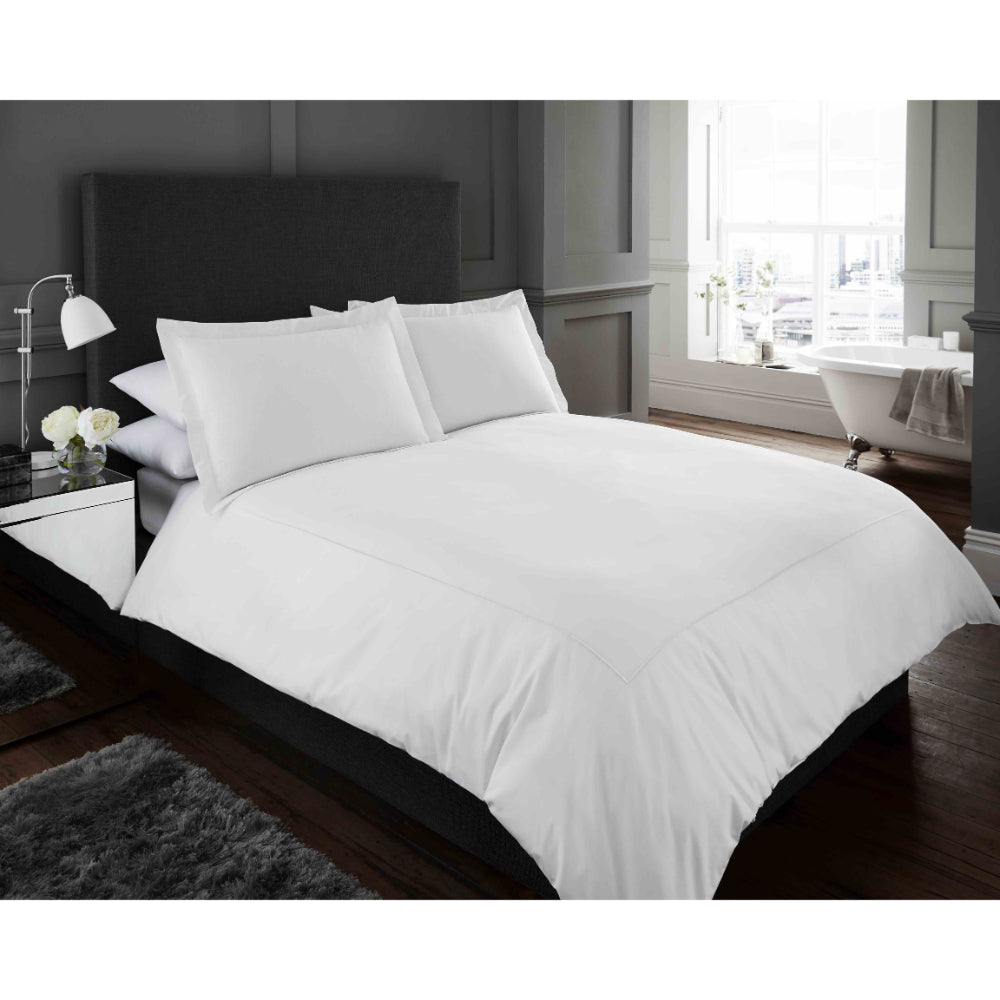 This cotton rich duvet cover set is simple yet stunning with the design of white with a white embroidered trim round the duvet cover and pillow case.