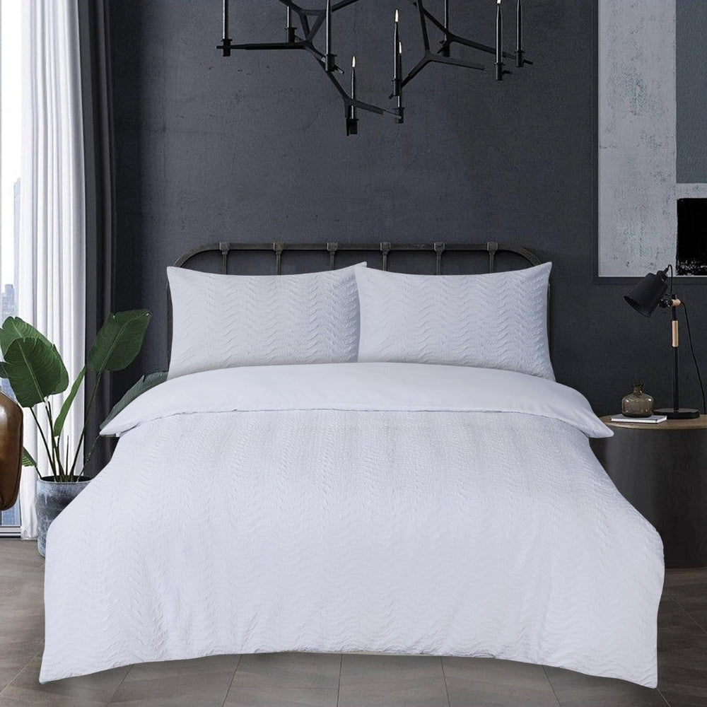 Discover the Magna Collection's embossed duvet set. The elegant duvet cover set features a wave pattern embossed onto both the duvet cover and pillowcases. The duvet set is crafted from microfibre for easy care washing, drying and ironing.
