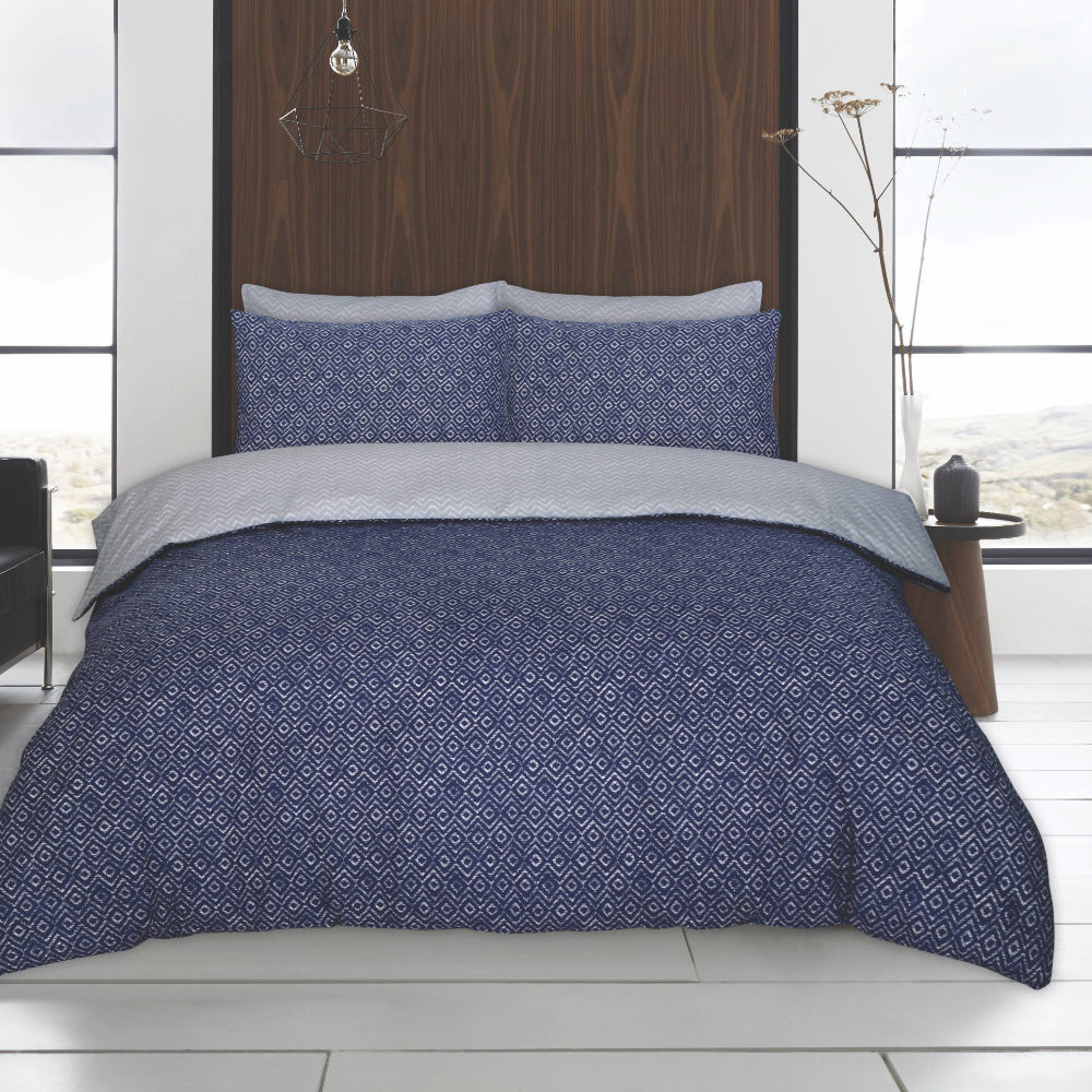 Lewis's Twin Pack Hadrian / Damond Duvet Set - Denim