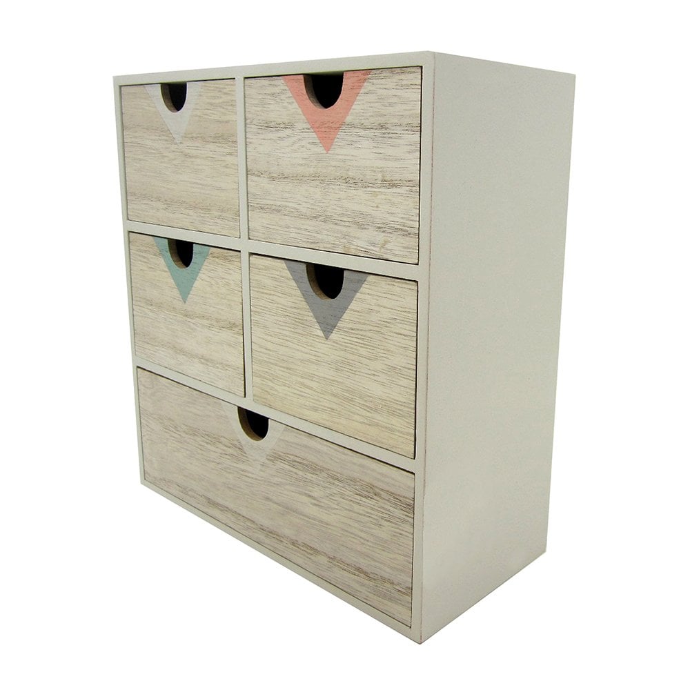 p>This beautiful jewellery cabinet has 5 drawers and is perfect for housing all your jewellery and precious items. It has a small pop of pastel colours and is perfect for placing on your dressing table!