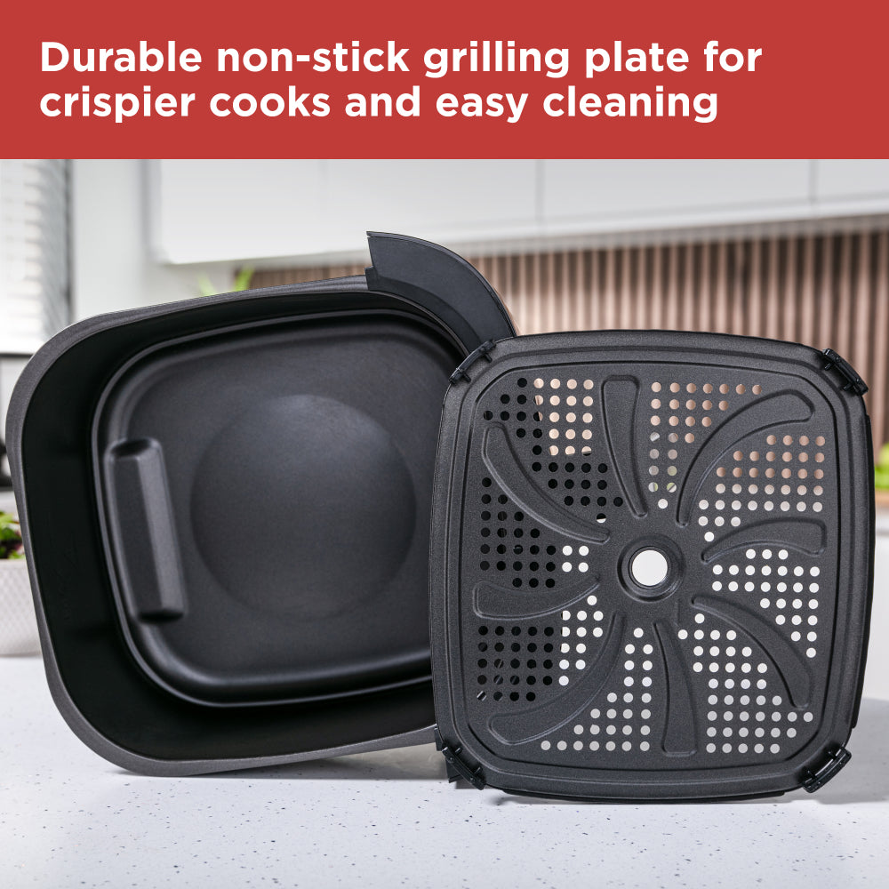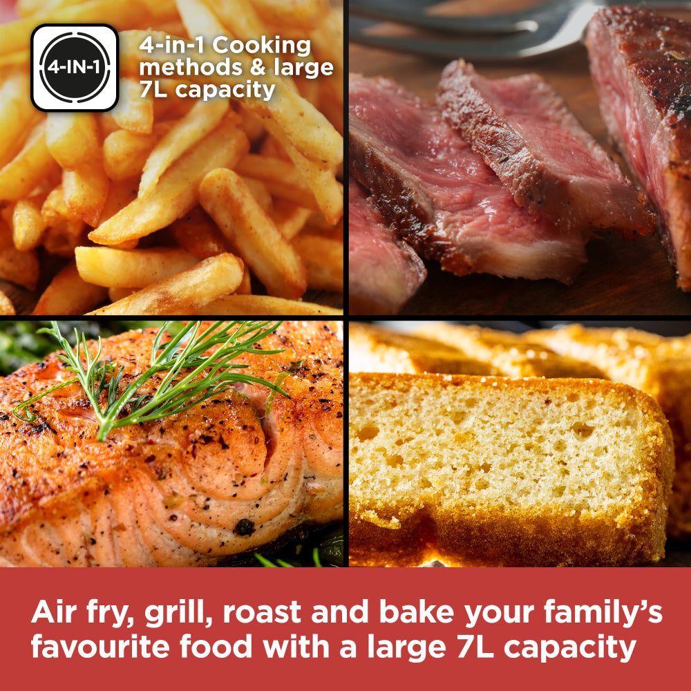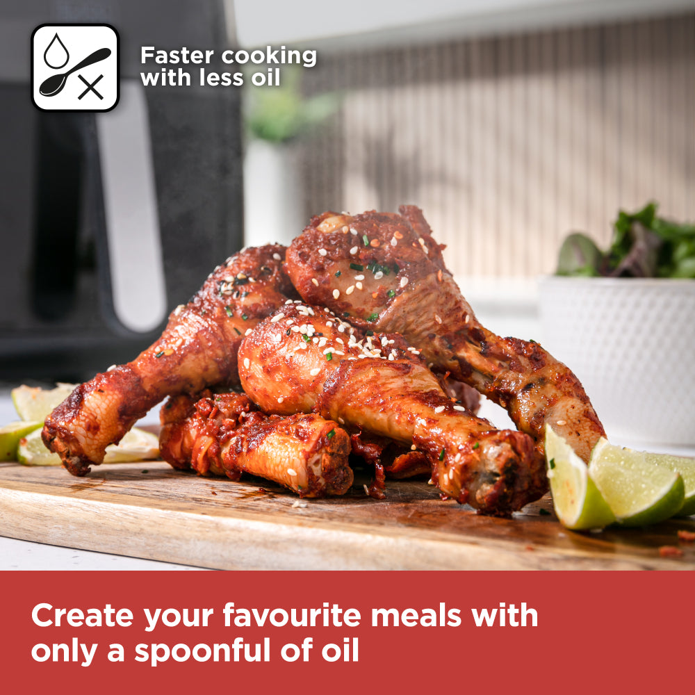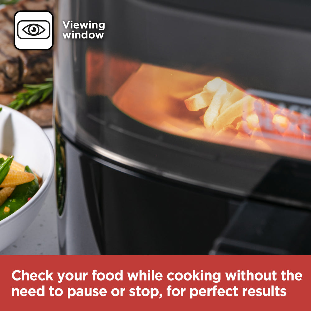 Fry, roast and bake delicious crispy chicken, golden chips and succulent meat for the whole family with BLACK+DECKER's 7L Manual Air Fryer. Less than one teaspoon of oil is required, all while keeping the same great taste, so you lose the fat not the flavour. Choose from 80-200C temperatures to evenly cook a wide range of ingredients, for deliciously healthy results. Quickly schedule the air fryer's cooking cycle using the 30-minute timer, so your food is ready for your family in no time. Keep an eye on your food through the large viewing window while cooking, without the need to pause or stop, to achieve the perfect crispy results. A pull-out drawer and removable non-stick frying basket require a simple hand wash for a sparkling clean.