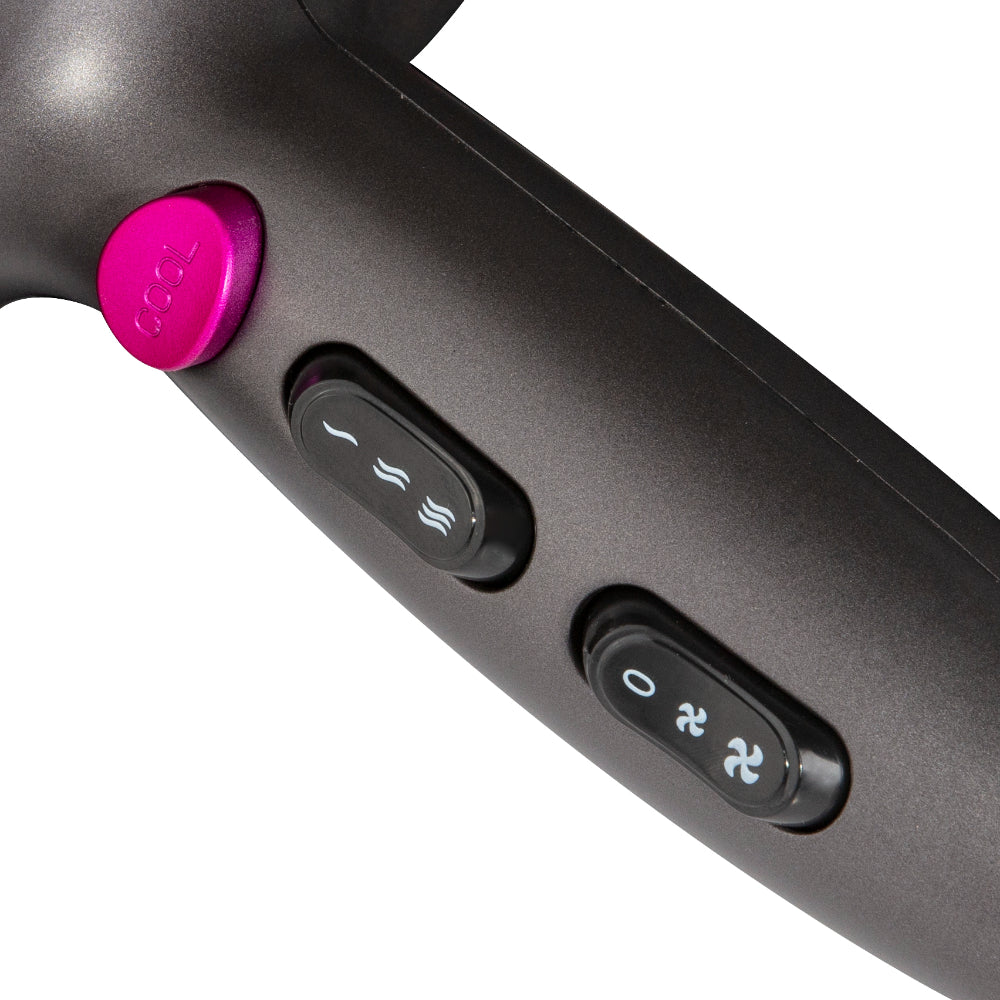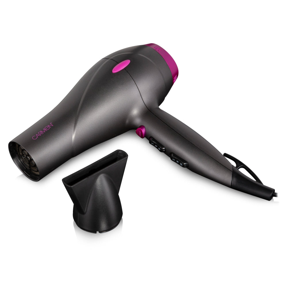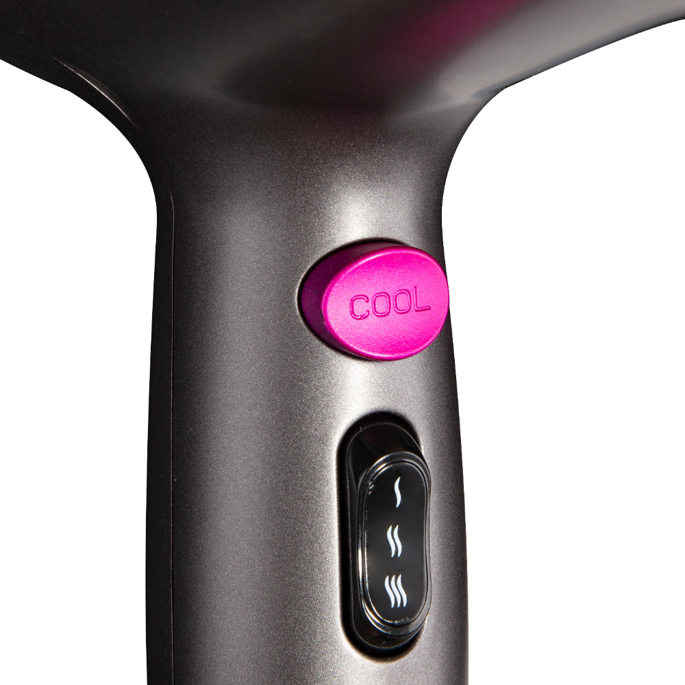 This 2000W Carmen Neon digital hair dryer features a Keratin ceramic coating, which helps give structure and protein to your hair when blow drying, preventing damage from repeat styling. There are 3 heat settings to choose from, as well as a cool shot function for locking your blow dry in place so you'll have the professional look that lasts all day. The 2 speeds offer a boost mode for a higher powered distribution of air for drying your hair quickly, no matter what the hair type. A 1.8 metre power cord gives you more freedom when styling, while the loop in the handle provides easy storage. Comes with a 3 year guarantee.