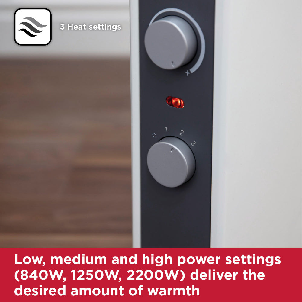 The freestanding convection heater rapidly circulates hot air throughout the room to combat the cold and maximise your comfort. With its lightweight build and carry handle design, the heater is easy to transport around the home or office to keep you warm during winter. It offers a selection of three heat settings and an adjustable thermostat to provide you with the optimal temperature. Boasting quiet operation, the unit offers high-performance heating without the noise. Safety features include built-in anti-frost protection as well as overheat protection.