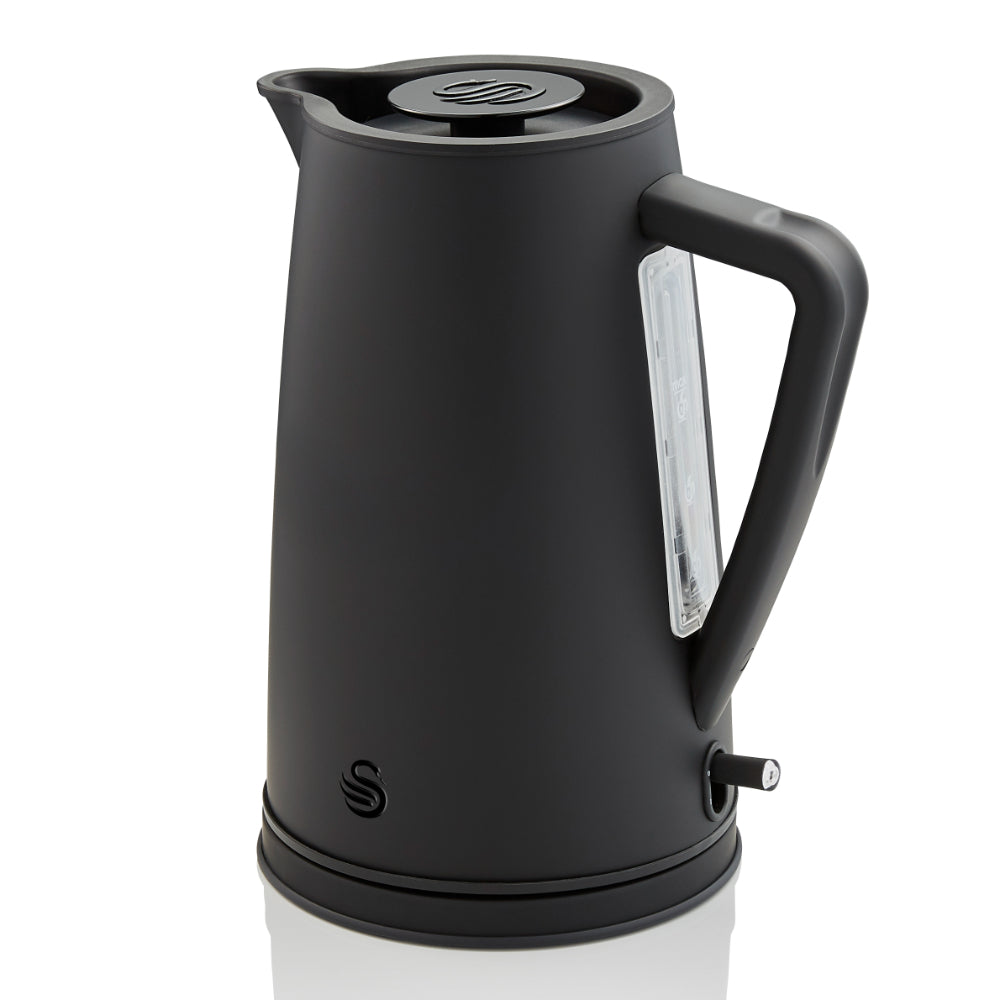 This sleek, contemporary, and stylish Swan 1.7 litre Stealth kettle is perfect for guys on the go, busy kitchens, and those looking for high performance without having to compromise on style. Sleek and streamlined design with a luxurious matt black finish. With its top-level design combined with its high functionality, you will enjoy making your cuppa almost as much as drinking it. The powerful 3KW concealed heating element provides a rapid boil so you can make a round of drinks in no time at all. The generous 1.7 litre capacity allows you to make up to 8 cups of tea, coffee, hot chocolate at once, and is perfect for boiling water for cooking. Cordless operation allows for maximum manoeuvrability, and a specially designed integrated spout allows for targeted pouring with no drips or spills. With a range of other impressive functions such as boil-dry protection and automatic cut-off to ensure your safety, as well as a 360-degree rotational base so you can easily return the kettle to its base even in a rush.