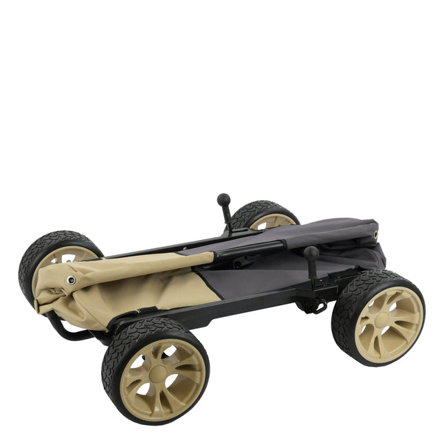 Eco Mobil from hauck is a versatile, pull-along wagon. The sturdy plastic base, firm, high-quality material on the side walls and a robust steel frame can easily handle loads of up to 50 kg. Thanks to its generous dimensions, there is room for two children in Eco Mobil. The comfortable seat cushions and a removable sun canopy have been provided for this purpose. The low center of gravity makes the wagon stable and unlikely to tip. For getting in and out, the sides are low and fitted with small handles. A practical parking brake prevents the wagon from rolling away on slopes. The Eco Mobile is easy to fold up, so it can be transported in larger trunks.