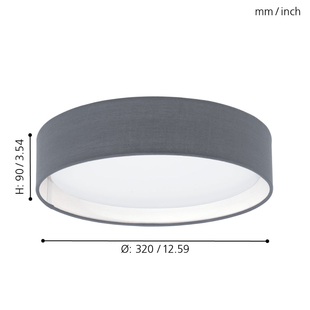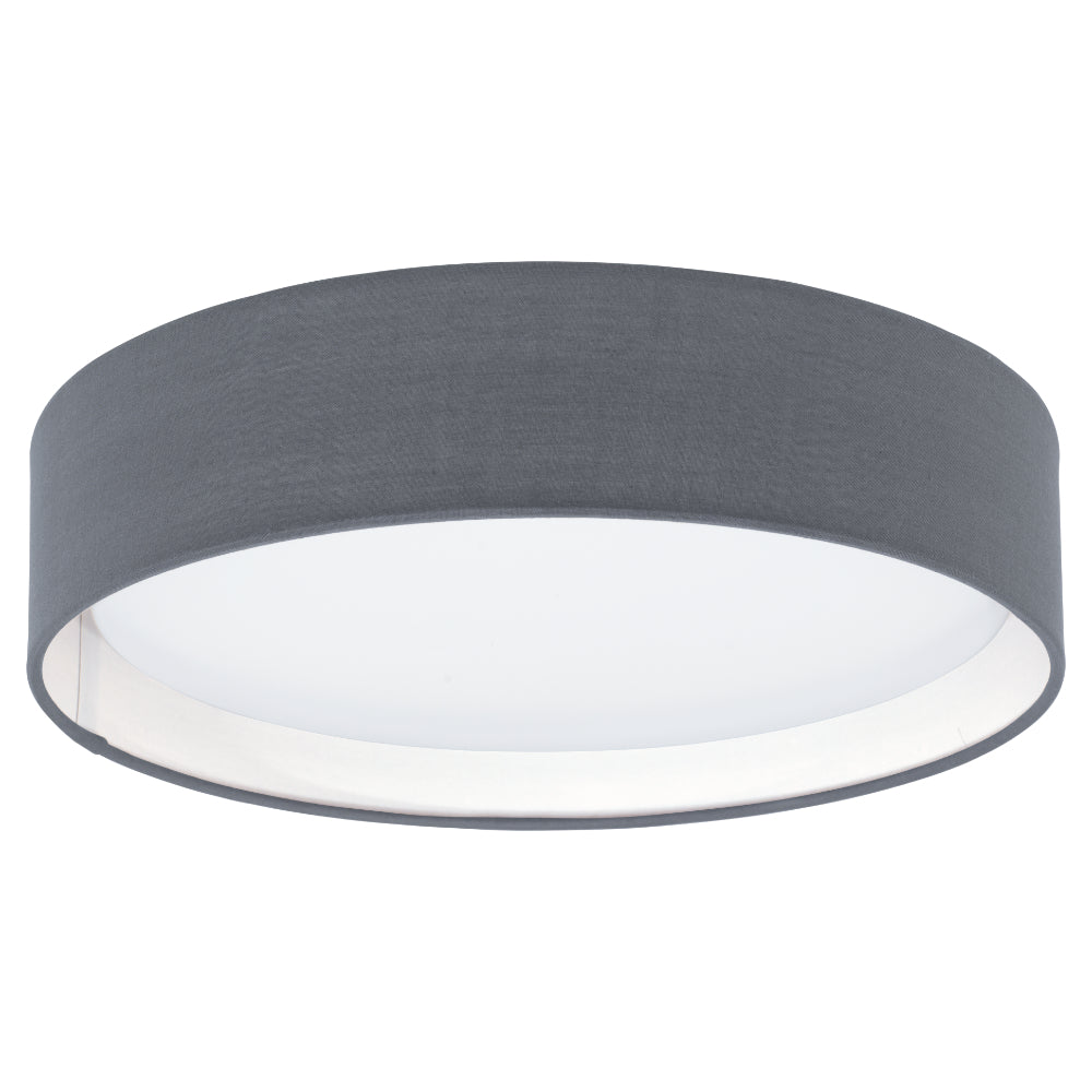 This ceiling luminaire from the series PASTERI is made of white steel, fabric in grey and plastic. It has protective insulation and equipped with a replaceable LED-lamp for a warm white light.