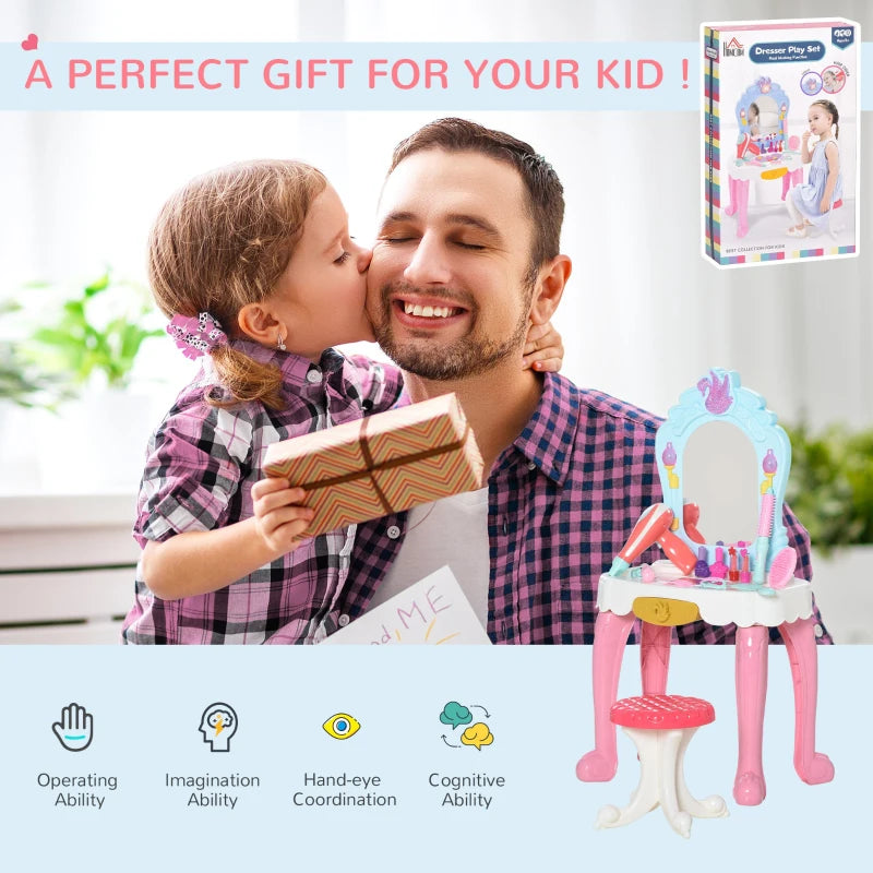 - Composed of a dressing table and a stool, a perfect gift for girl ages 3 to 6 years old