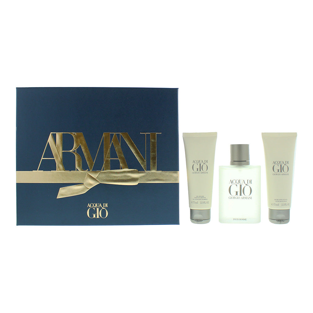 Acqua Di Gio is an Aromatic Aquatic fragrance for men, which was launched in 1996 by Giorgio Armani. The fragrance, which was created by Alberto Morillas, Annick Menardo and Christian Dussoulie, opens with a lot of Citrus notes, as Lime, Lemon, Bergamot, Orange, Mandarin Orange and Neroli are partnered with Jasmine. In the heart of the fragrance are notes of of Sea Notes, Jasmine, Calone, Peach, Freesia, Hyacinth, Cyclamen, Rosemary, Violet, Coriander, Nutmeg, Rose and Mignonette. The base notes consist of White Musk, Cedar, Oakmoss, Patchouli and Amber. The fragrance is a well blended and complex one, giving wave after wave of gorgeous notes, delivering a fantastic summer scent. The fragrance is clean, fresh, refreshing and hugely popular. Given the refreshing notes, and the strong citrus opening this is best used in the warmer weather of Spring and Summer. This gift set includes an Eau de Toilette (100ml) and a tube of fragranced all over body shampoo (75ml) and a bottle of Aftershave Balm (75ml).