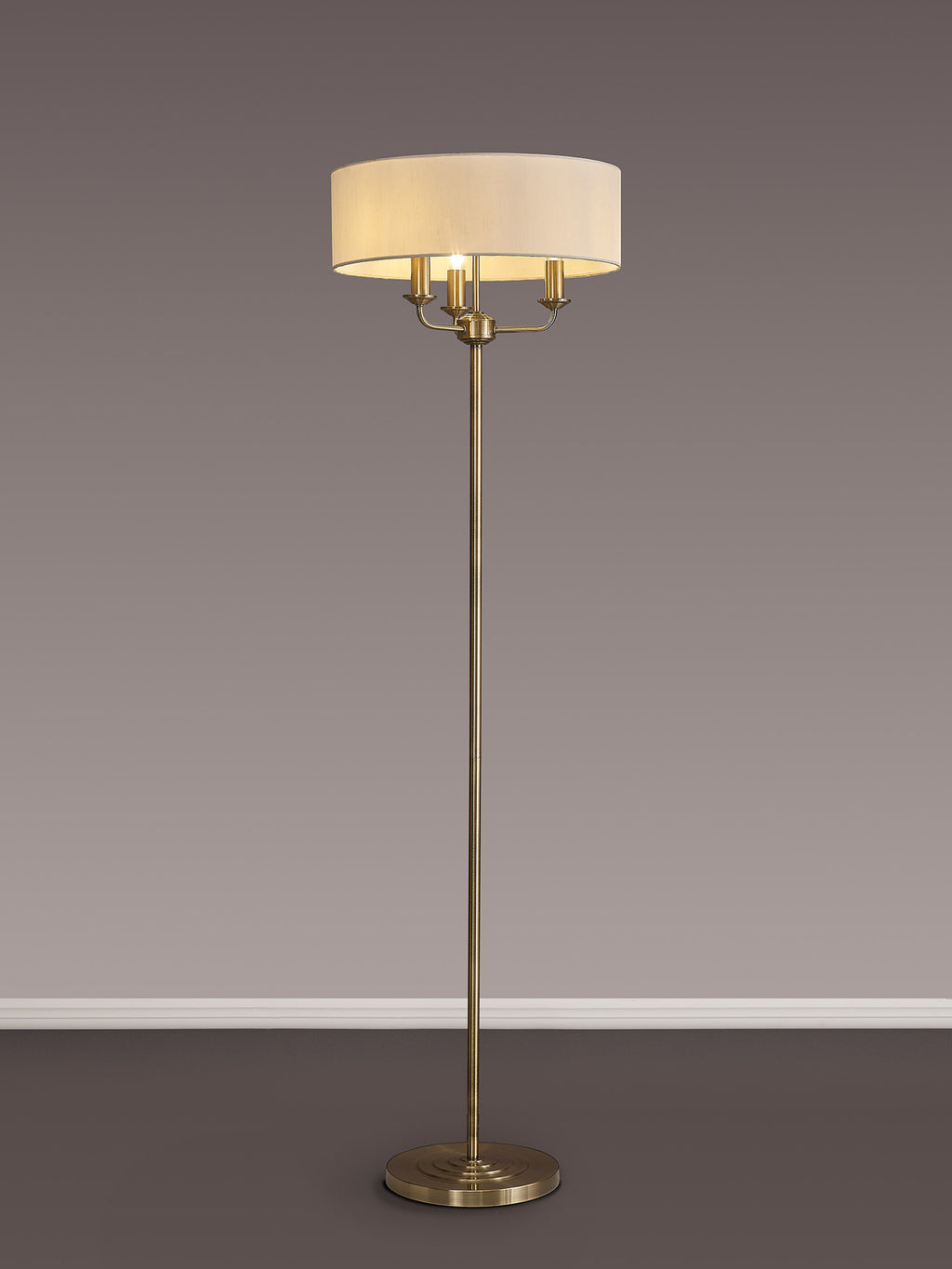 Banham Floor Lamp with 3 Lights Antique Brass & White