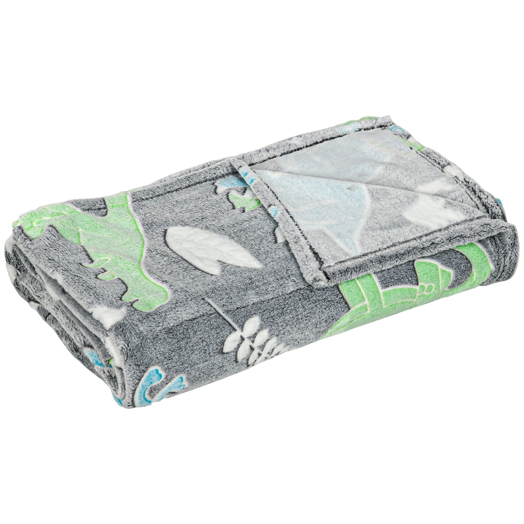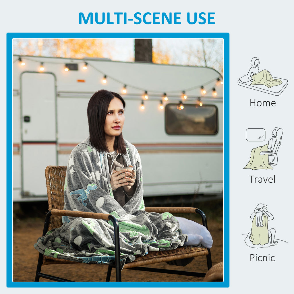 HOMCOM Flannel Fleece Blanket Double Size Glow in The Dark 203x152cm Dinosaurs