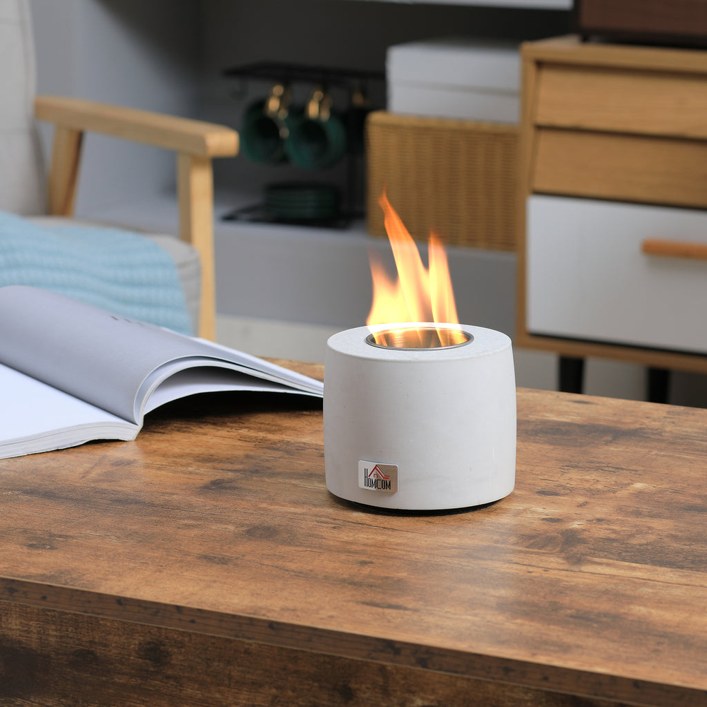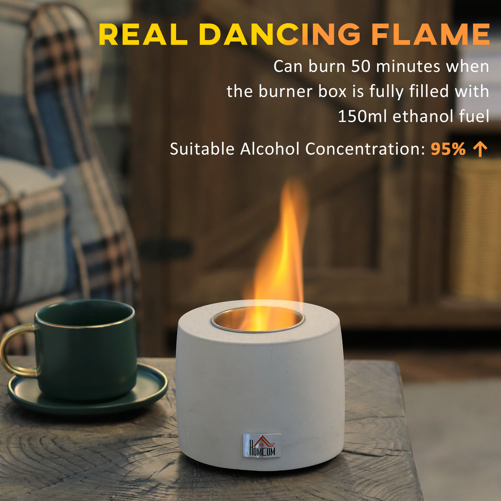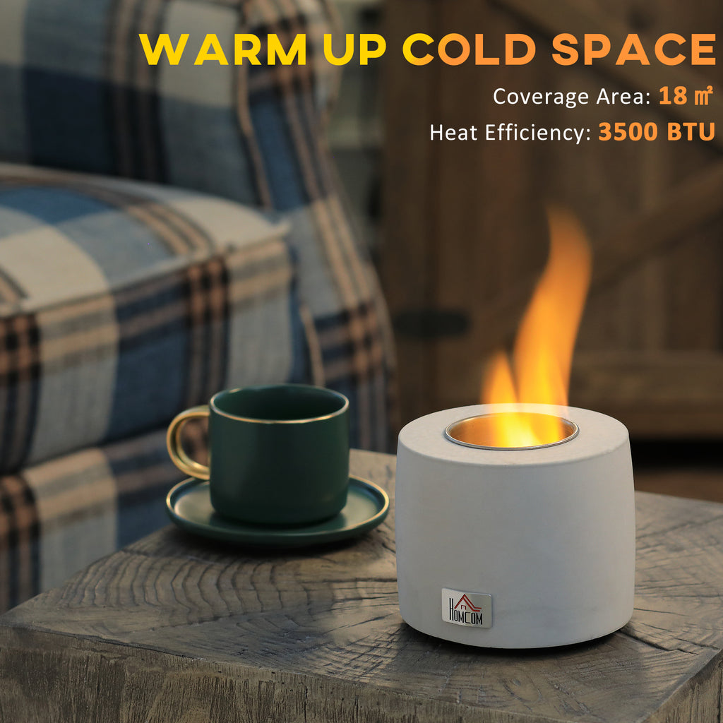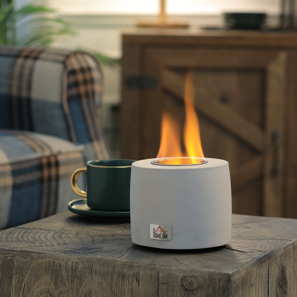 Say goodbye to sparks and smoke! Our HOMCOM bioethanol tabletop fireplace makes a statement in your space, even in the smallest of spots - without heavy maintenance or hazards. It's crafted into a smooth round shape and imitates pottery for a cool look. The inside fuel tank can hold up to 150ml, which provides up to 50 minutes of burning time. It's complete with a rubber base mat, which grips onto the connecting surface and prevents this mini fireplace burning below.