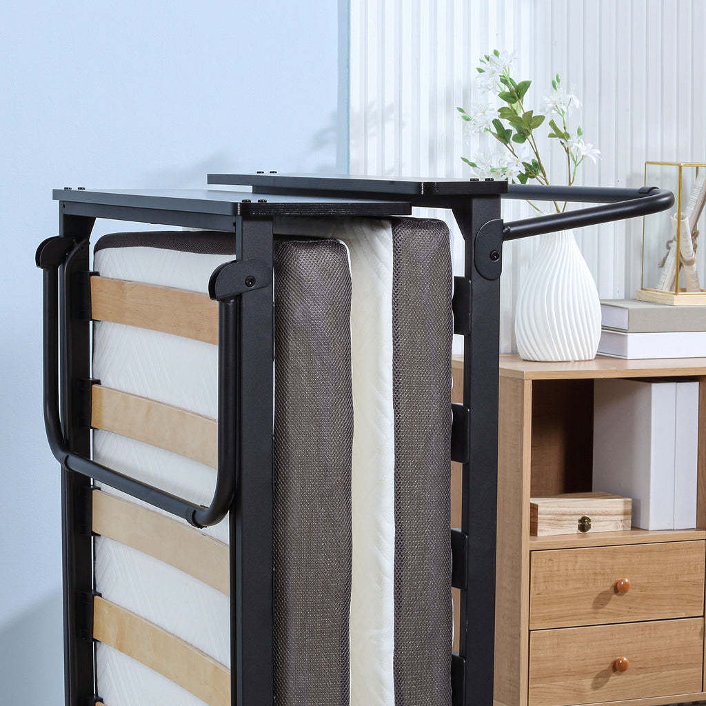 Are you worried that there are no beds available for unexpected guests? HOMCOM folding single bed will solve your troubles. With this cot bed, you can quickly create space for overnight guests. No additional space is required. As long as the bed frame is pulled away, you will be able to provide a bed to the guests immediately. When not in use, you can fold it up and place it in corner to save your space. With omnidirectional wheels, you can move the fold up bed to wherever you want freely.
