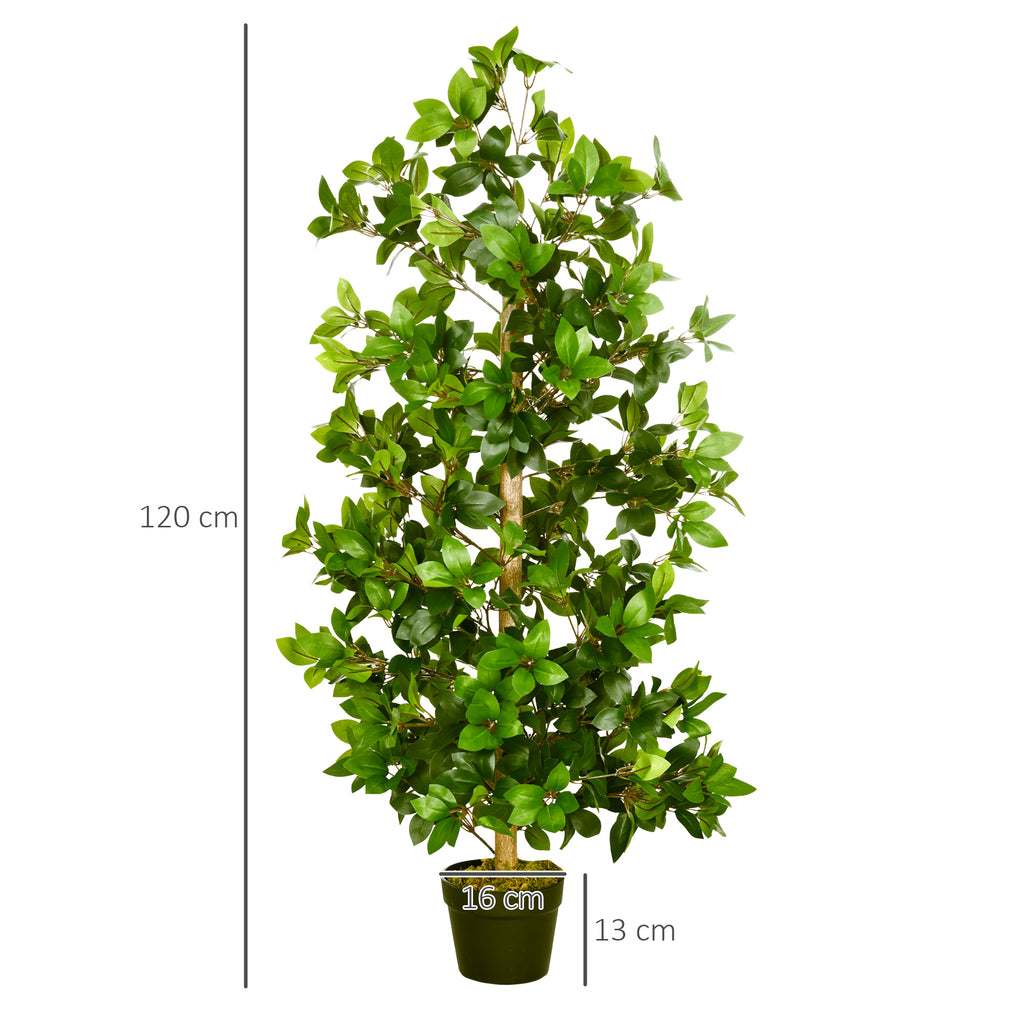 Bring beautiful greenery into the home without upkeep - pick this faux Laurel tree, from Outsunny, for a breath of life this season and beyond. Made from plastic for extended lifespan and crafted into a 1,350 design, the potted outdoor plant boasts a realistic colour and texture. The faux design means zero maintenance too - will keep looking the same even without any water. Finished with a cement-filled pot so it stands upright, wherever it is placed.