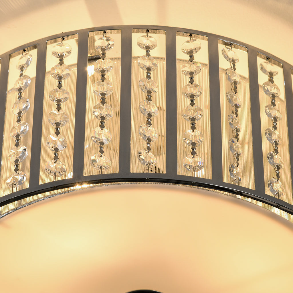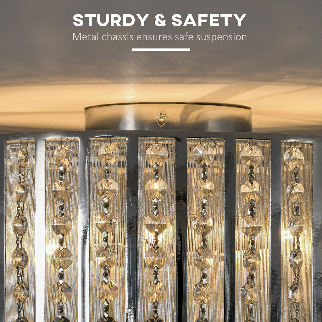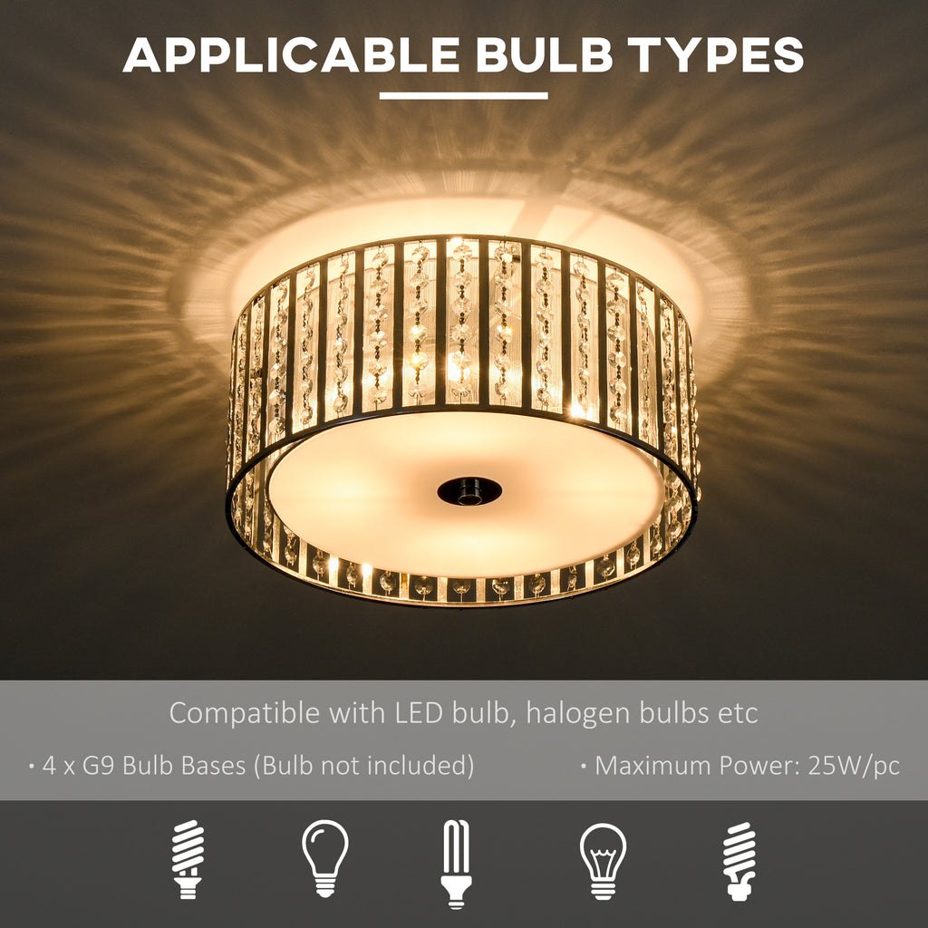 A beautiful, sparkling ceiling light for living room, bedroom, hallway and beyond. This HOMCOM ceiling chandelier is formed into a round shape, with strings of crystallite drops dotted around - the light will sparkle as it passes through! A metal frame for a strong structure, this piece takes four bulbs to disperse plenty of light.