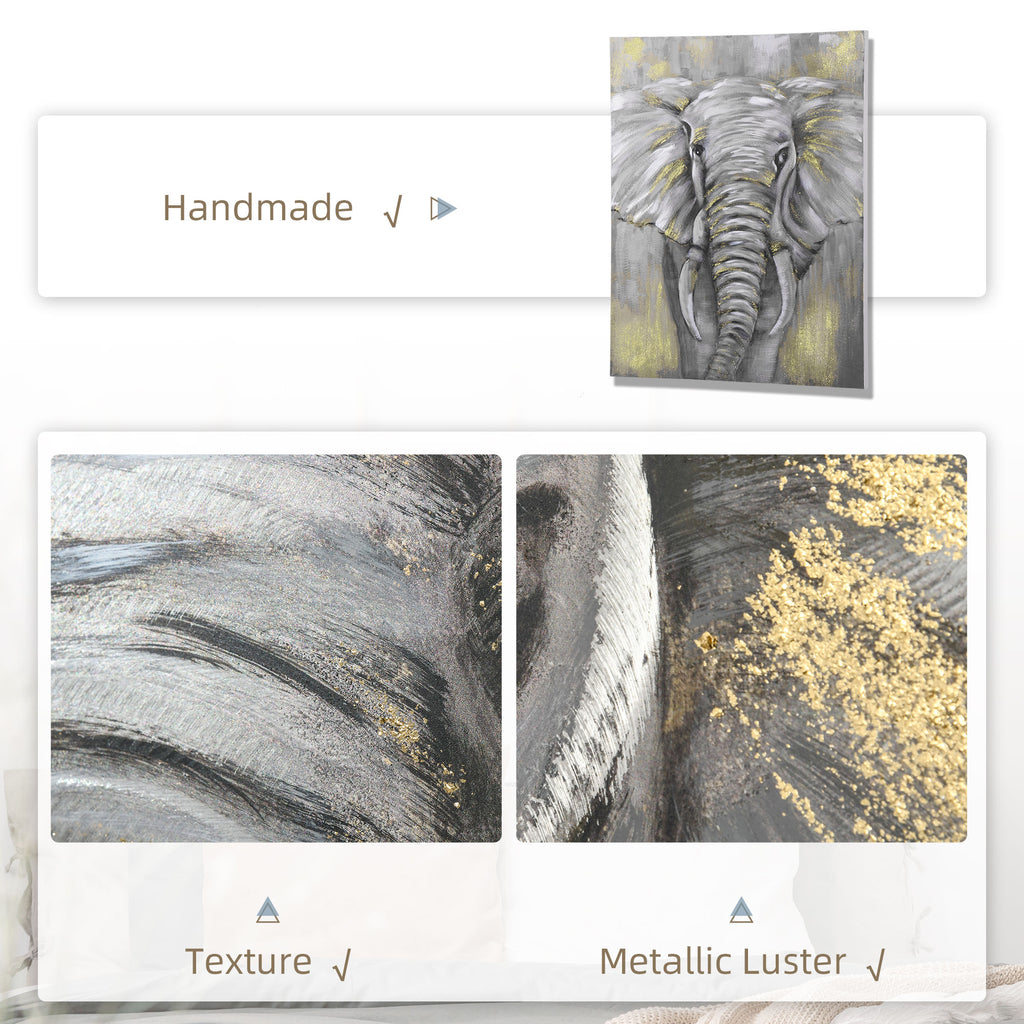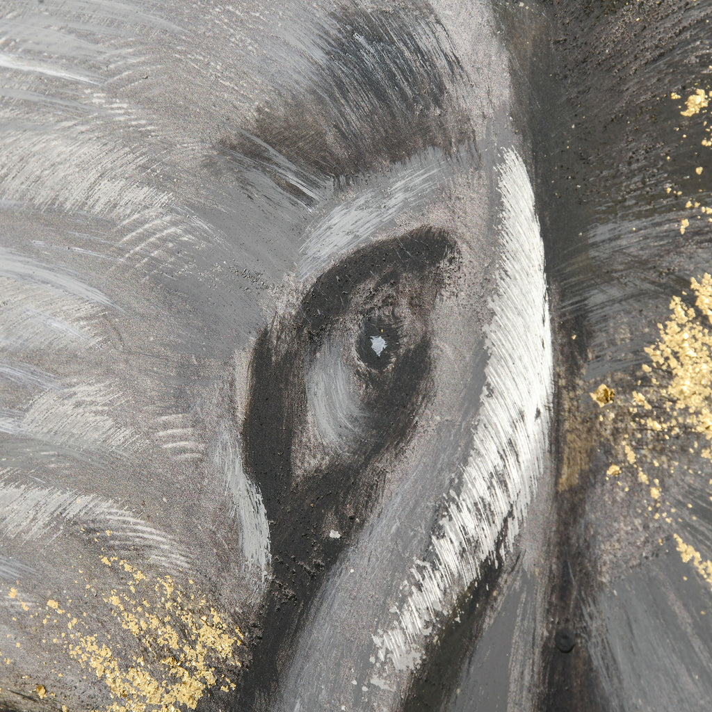 - Type: a grey elephant. Wrapped aluminium on the canvas for unique metallic lustre