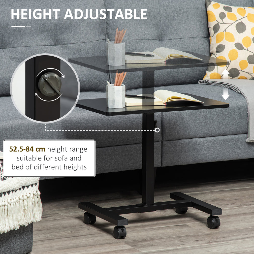 Where to work? It's up to you! HOMCOM adjustable laptop table with four 360 degree rolling wheels can be moved to anywhere, bedroom, living room, study room, etc. Occupies very little space, never affect daily activities. You can change the height from 52.5 to 84 cm, to fit most of the chairs and beds. Choose this sofa desk, make your work more effective.