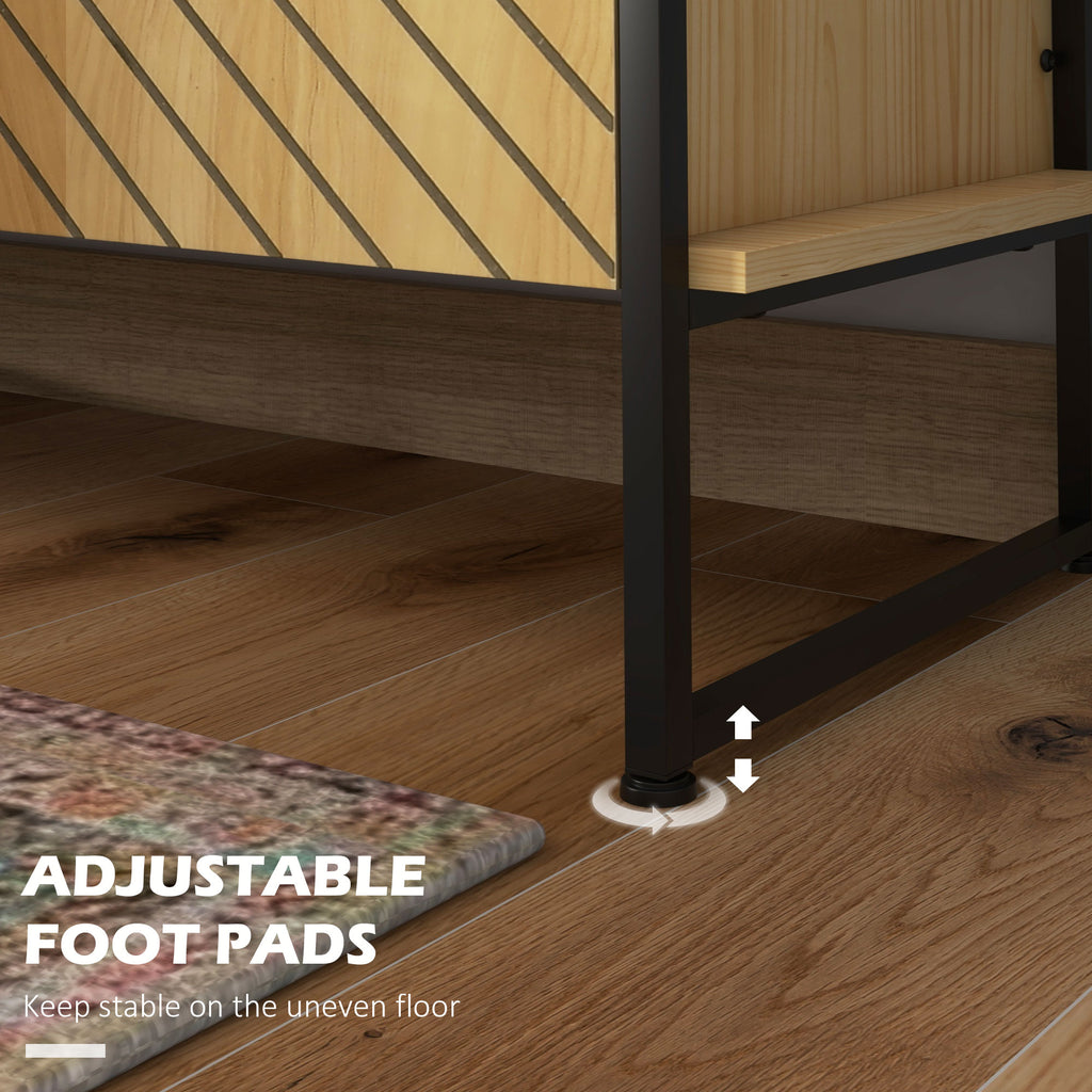 Some different for your storage? Look to this HOMCOM piece. It shows off a wavy pattern on the cupboard doors, in black, which contrasts the wood-effect colourway for a cool look with extra impact. There are four upper shelves for open display space, with a bottom cupboard for hidden storage. A powder coated metal frame for a strong, supportive structure; comes complete with anti-tipping straps for safety.