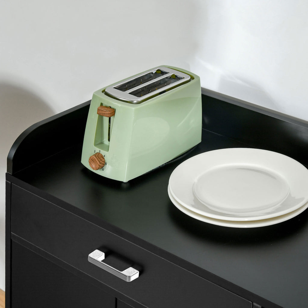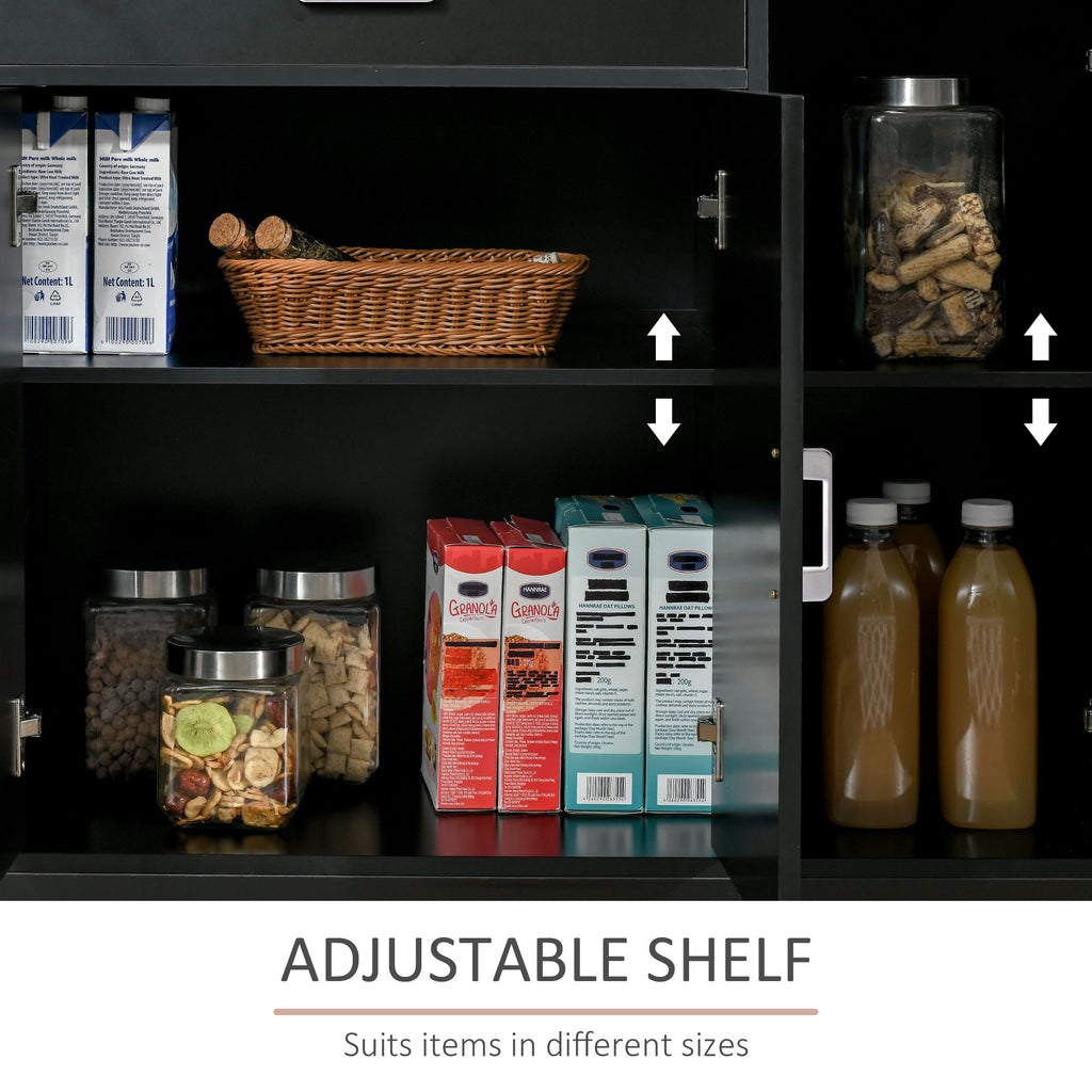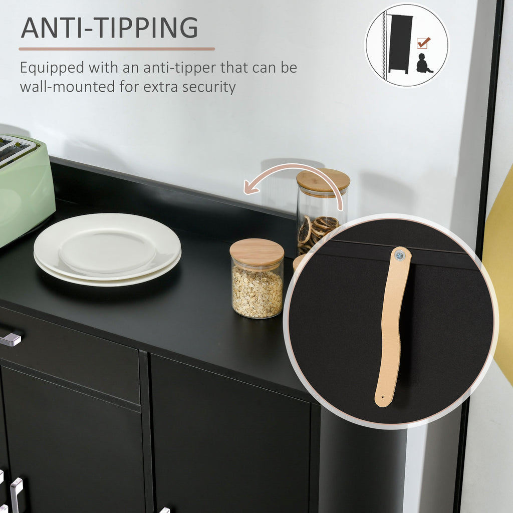 Quickly add storage and get yourself clutter-free with this HOMCOM sideboard. Clean shape and neutral colour is an easy piece to welcome into your space. Features two cupboards, drawer and flat top - plenty of storage and display room. Inside both cupboards there's an adjustable shelf: it's easy to fit in different sized items. Top drawer is suitable for utensils. Finished with safe anti-tipped straps to attach to the wall.