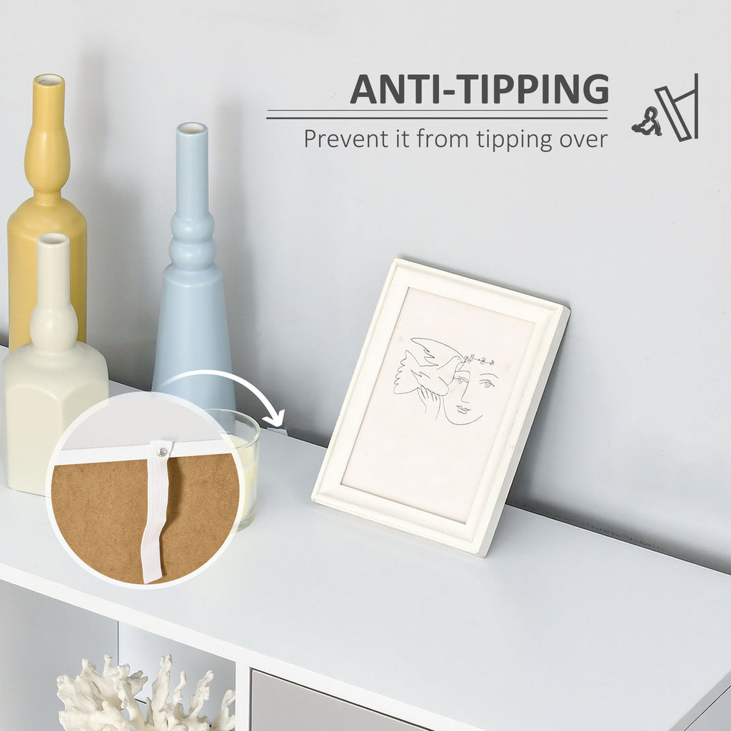 Quickly add much-needed storage with this HOMCOM cabinet. Six same-sized compartments are formed of three cabinets and three open cubes - a mix of display and storage to hold and show off everything you want in a place. It's subtle design makes it suitable for use in the home and office: use as an entryway table, bedroom side cabinet, living room bookcase, or how about as a toy organiser? Finished with wooden legs for full support.