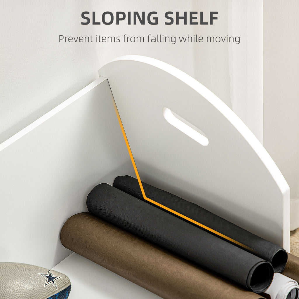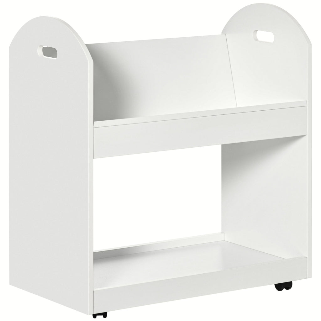 This book shelf unit is compact and ideal for small spaces needing more storage. The 2-tier corner shelf unit provides lots of space for supplies and accessories. Armed with handles for smooth moving. Easy-roll wheels allow you to move wherever needed most, and the clean appearance and sleek surface are great in modern or industrial offices.
