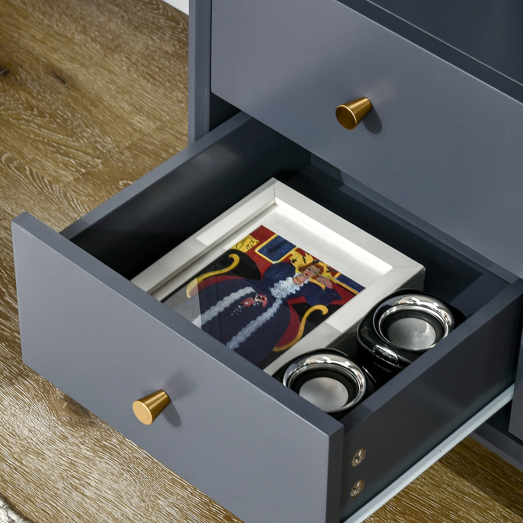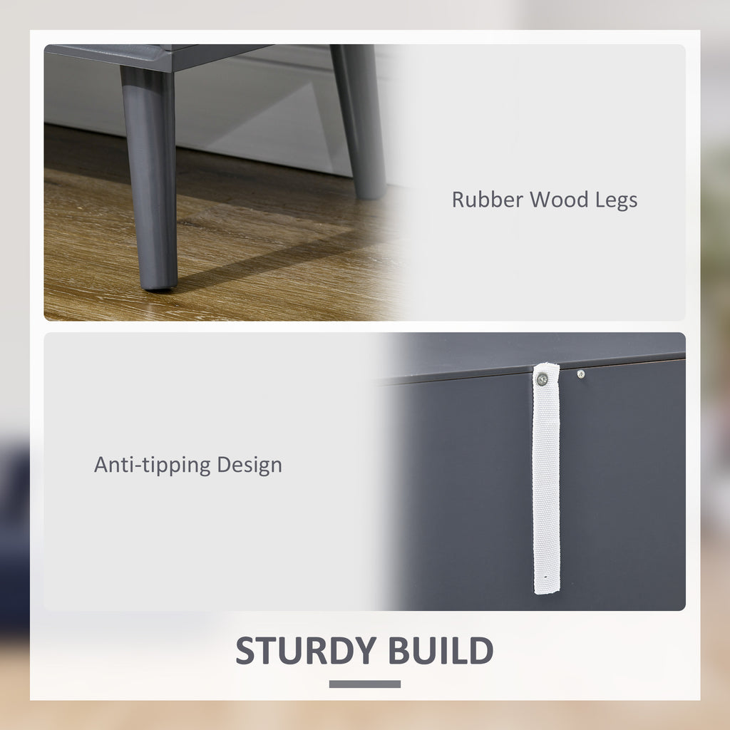 Go grey this season with your storage, thanks this storage sideboard from HOMCOM. Made from MDF for a tough structure, it's crafted into a boxy shape in a shade of modern grey colour. The steel handles are a sleek addition. It comes with two drawers, a large shelf and a side cabinet, which comes with and adjustable shelf - easy to set the storage space to a size you want. Comes complete with four wooden legs for strong support.