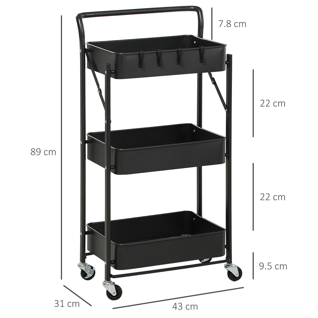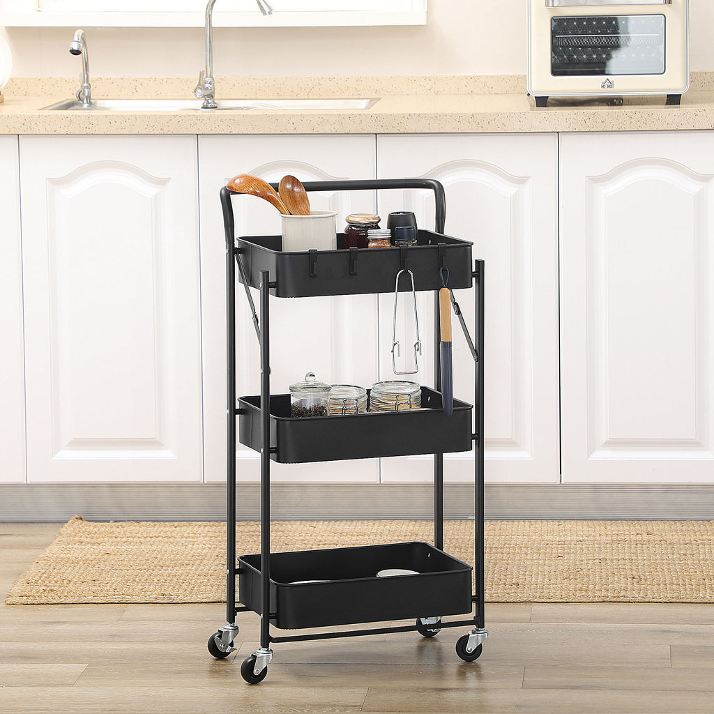 This HOMCOM trolley helps bring extra storage in plenty of different places. Fitted with wheels and with a top handle, it's super easy to move around from room to room - with brakes too to keep standing in place when needed. Made from powder coated steel, it's a strong piece - with three baskets to give you organised storage. A great piece for any home.