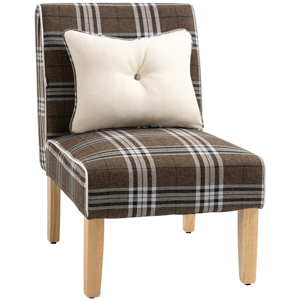 Bring classic style to your room with this HOMCOM chair. It's covered in linen-look upholstery in a checked design for standout style, making it an accent piece you'll find hard to decide where to have! The four wooden legs ensure strong support, whilst the padded seat and back make this chair super comfortable to sit on. A firm back for support, with no arms for more freedom. Comes complete with a matching pillow.