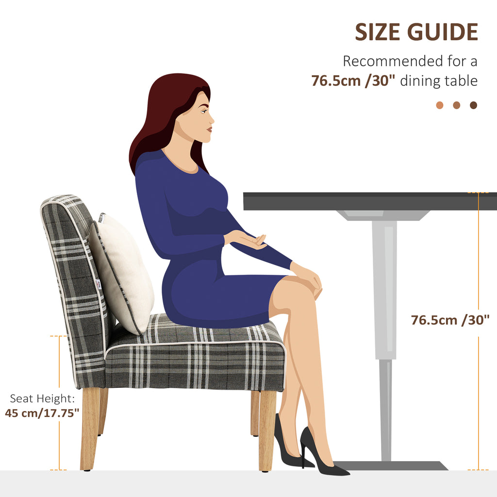 Bring classic style to your room with this HOMCOM chair. It's covered in linen-look upholstery in a checked design for standout style, making it an accent piece you'll find hard to decide where to have! The four wooden legs ensure strong support, whilst the padded seat and back make this chair super comfortable to sit on. A firm back for support, with no arms for more freedom. Comes complete with a matching pillow.