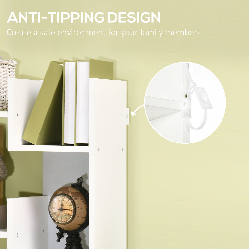 Home storage, but done in a unique way. This HOMCOM ladder shelf comes in a cubic shape, with open and closed shelves - brings a mixed dimension of character to where it stands. Made from a blend of particle board and MDF, this furniture piece is sturdy - with the flat base keeping it balanced - for the everyday storage and display of books, trinkets, boxes, photos and beyond. Comes with anti-tipping straps to safely attach to the wall.
