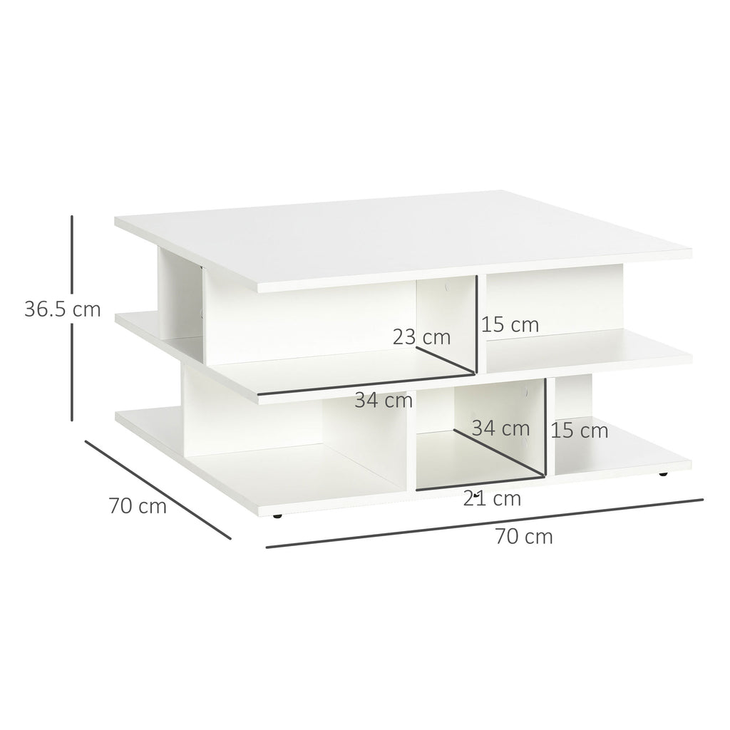 This multi-storage cube coffee table from HOMCOM can hold everything you need in your living space. A large table top to give plenty of holding room, there's a plethora of shelves beneath which offer more discreet holding and display room. Made from particle board, this low coffee table is durable, with a protective melamine coating. Completed with nine handy foot pads.