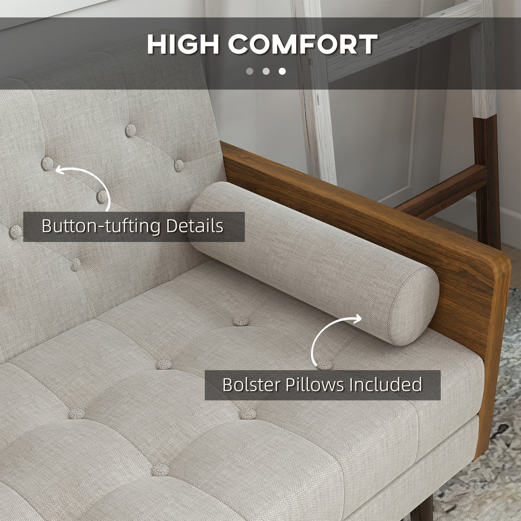 This three-seater HOMCOM sofa bed gives you space you deserve to relax and rest, day and night. It comes in a retro design, for something different in your living space. The three-position backrest allows you to lie back to a position of your choice - the click-clack mechanism makes it easy to adjust. Both the seat and backrest are thickly padded, with two long pillows included for extra comfort. Complete with lift-up side tables.