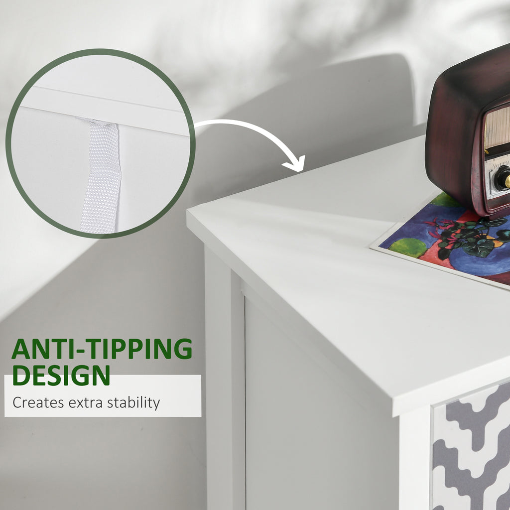 Add character to the home with HOMCOM storage unit. Four drawers with different colourful patterns for a stand-out look. Made from MDF, this storage cabinet is sturdy and durable - suitable for everyday use. Whether it's for the bedroom, the living room, or even the attic, this is the piece to stand boldly in place.