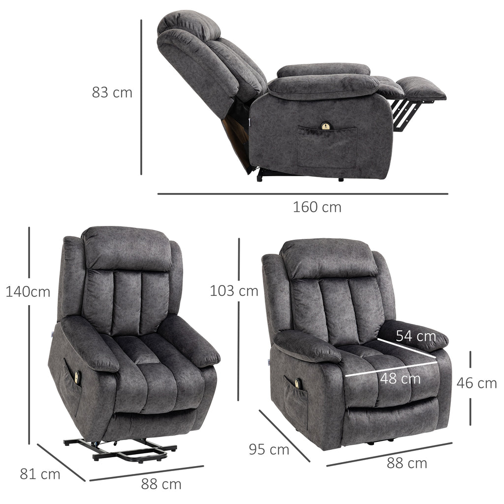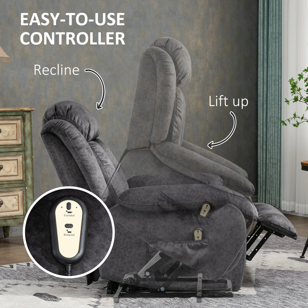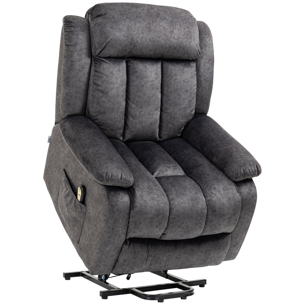 Generously sized, thickly padded and ever-so helpful: this HOMCOM rise and recliner chair does it all. The electric powered motion makes it move upwards to a gentle angle - sits you in and lifts you out of this armchair gently and easily; ideal for people who require that added bit of assistance, without needing an extra person present. Thickly padded for comfort and wrapped in soft fabric upholstery, this recliner armchair is extremely comfortable: a piece you'll love relaxing in.
