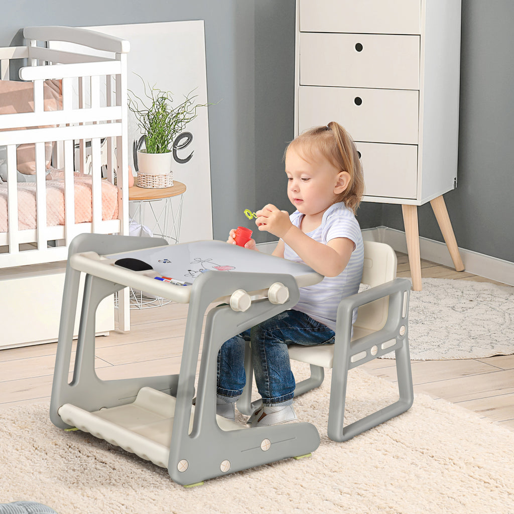 - Innovative table transforms into a whiteboard, giving you a platform to teach them from. Angle is adjustable