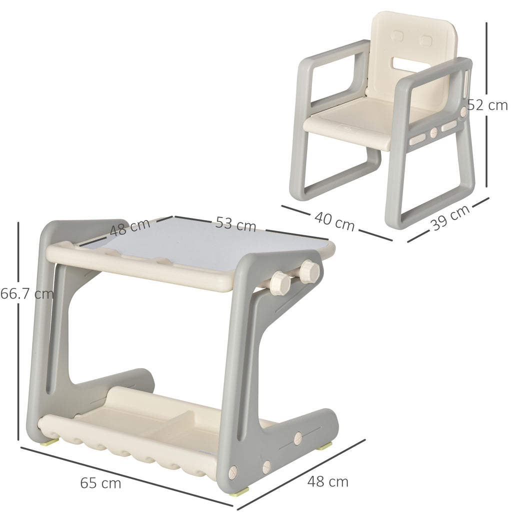 - Dimensions: Table: 66.7H x 65L x 48Wcm. Table desktop: 53L x 48Wcm. Chair: 52H x 39W x 40Dcm