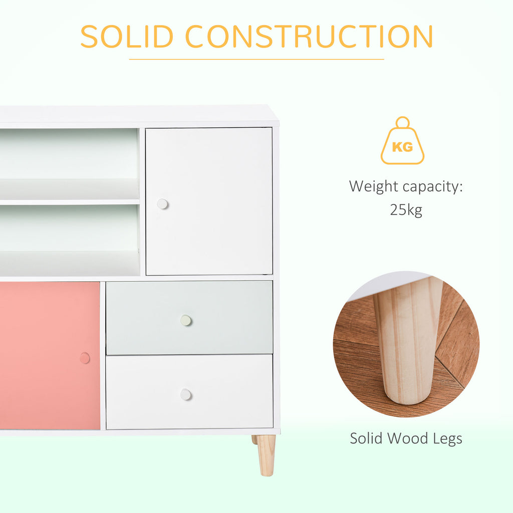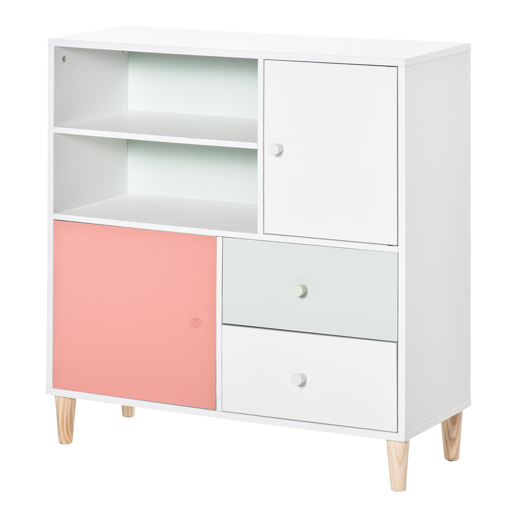 Bring subtle charm into children’s rooms his season - grab this bookcase from HOMCOM. The simple appearance makes it suitable for lots of differently-styled bedrooms and playrooms. Features two shelves and four cabinets for lots of storage. MDF structure is tough and durable, finished with four wooden legs for a solid base.